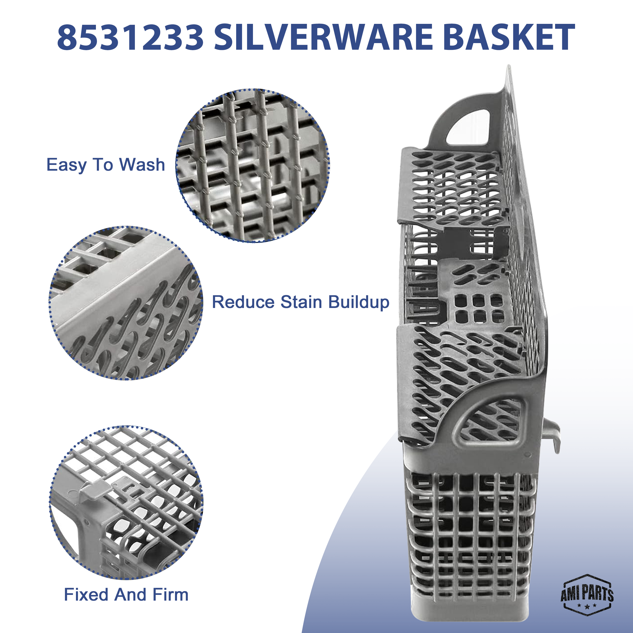 8531233, WP8531233VP, 8531288, WP8562043, WP8562043VP, 1180249, AP6013260, PS11746482, 941351, AP6012898, PS11746119, w10190415, Dishwasher Silverware Basket.