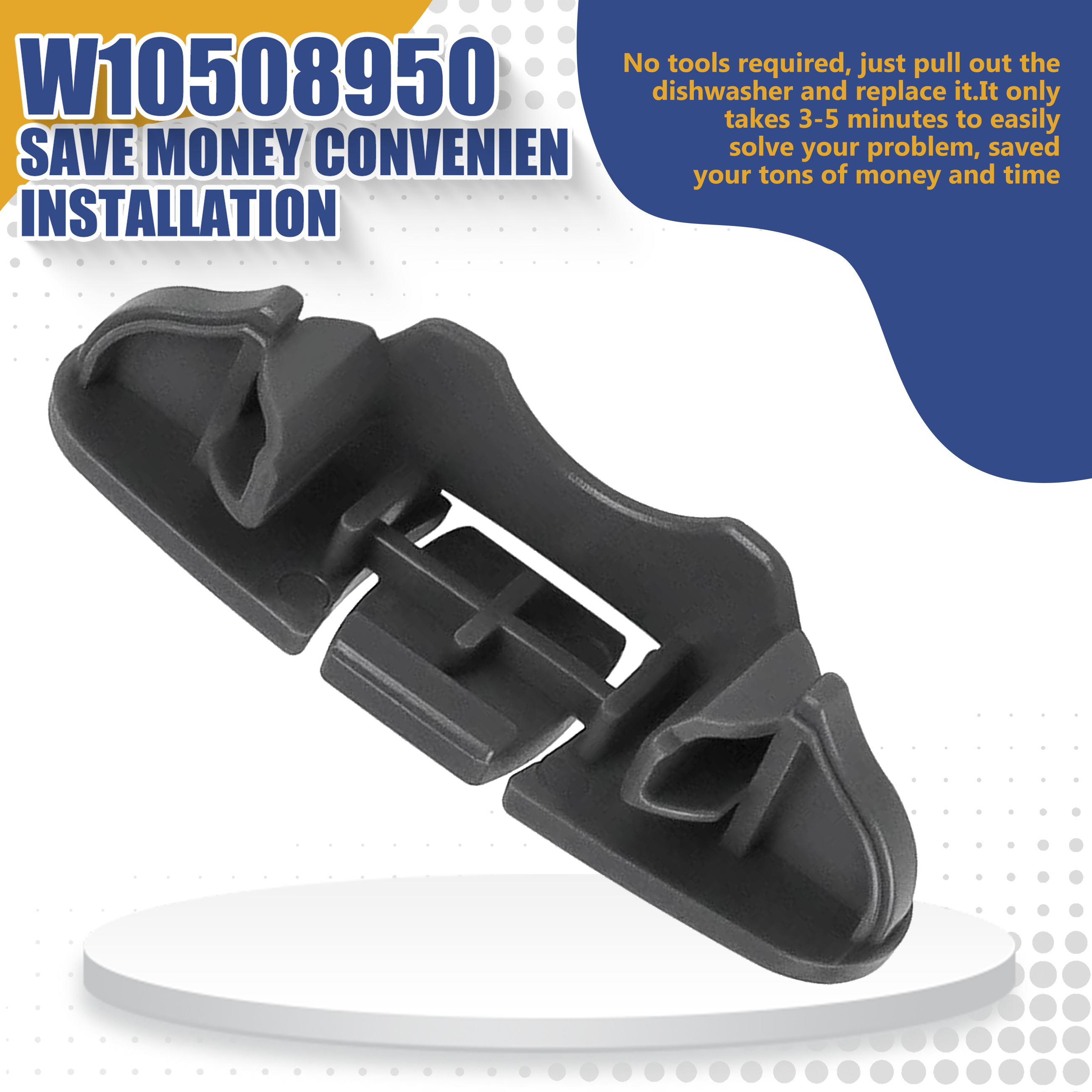 The W10508950 dishwasher rack stop clip features simple installation that saves time and effort, effectively preventing the upper rack from falling out due to excessive extension beyond the track. During installation, insert it from the bottom of the track, align it with the two mounting holes, and push it upward. It can directly replace damaged dishwasher track stops, ensuring convenient and efficient maintenance.