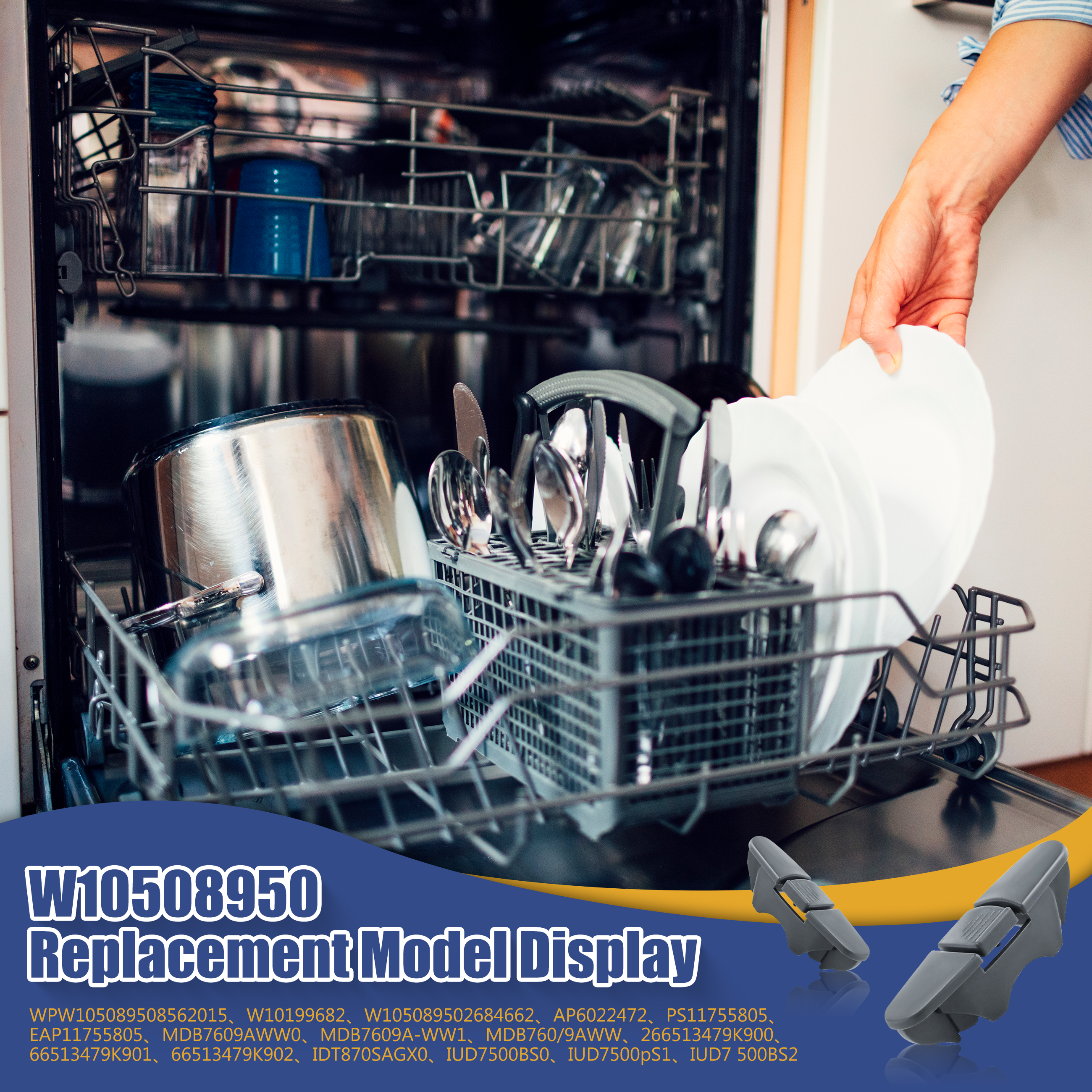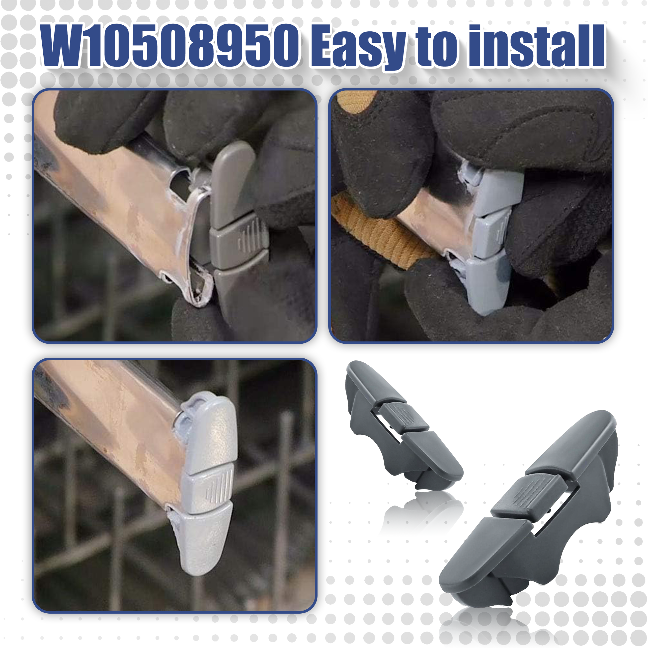 Benefits: W10508950 WPW10508950 Dishwasher Upper Rack Slide Stopper Clip, crafted from high-quality durable materials, meets OEM standards and withstands long-term wear and tear. The WPW10082861 stop clamps are installed at both ends of the slide rails. The W10508950 stop clamp securely locks the rail, effectively preventing the upper dish rack from sliding completely off the track and ensuring safe operation.