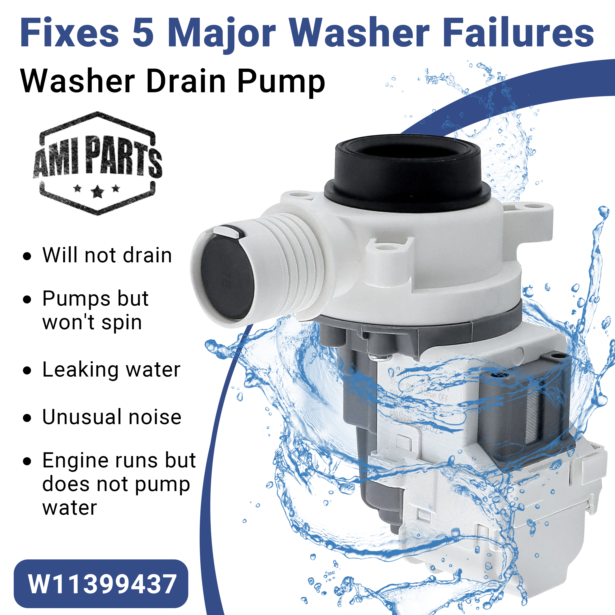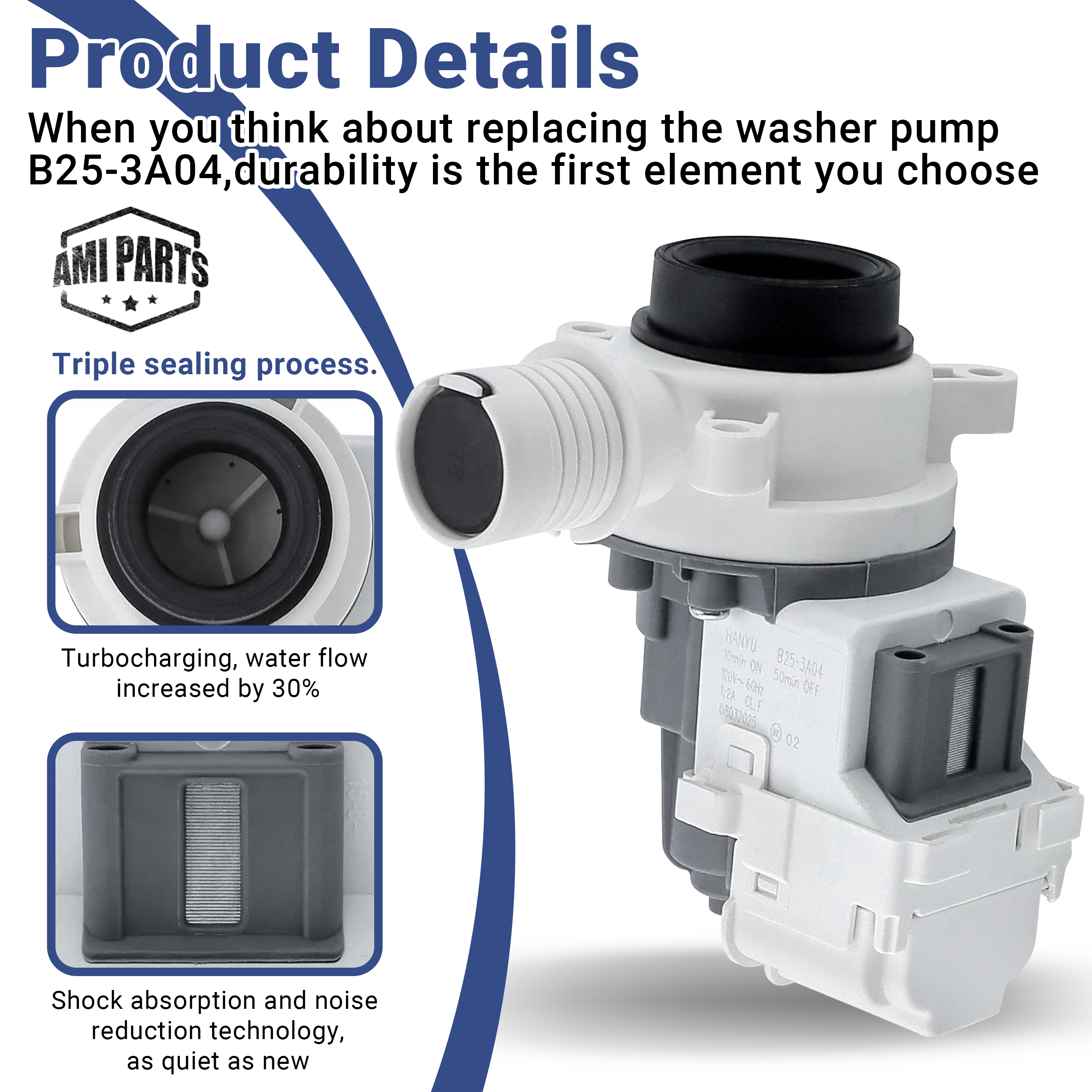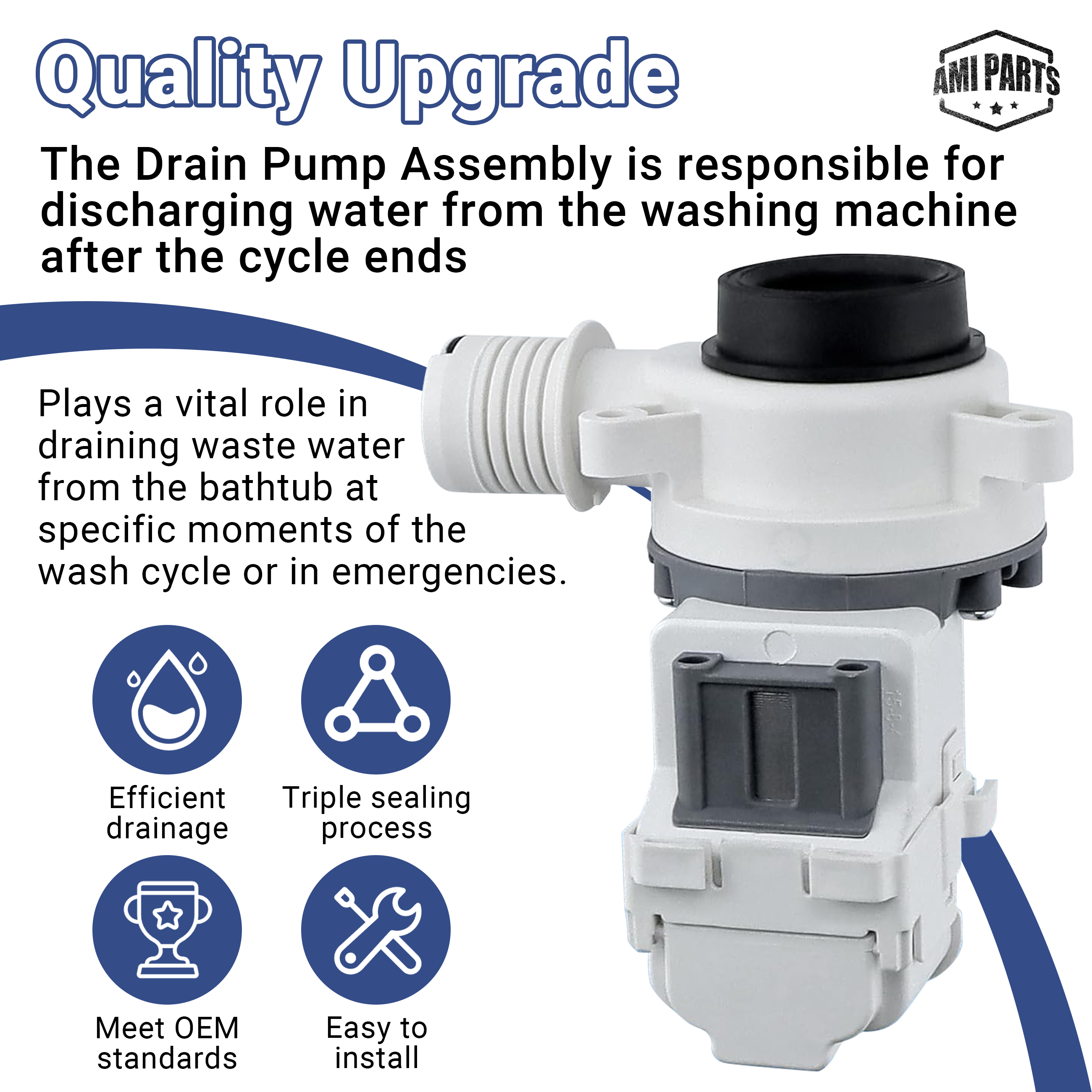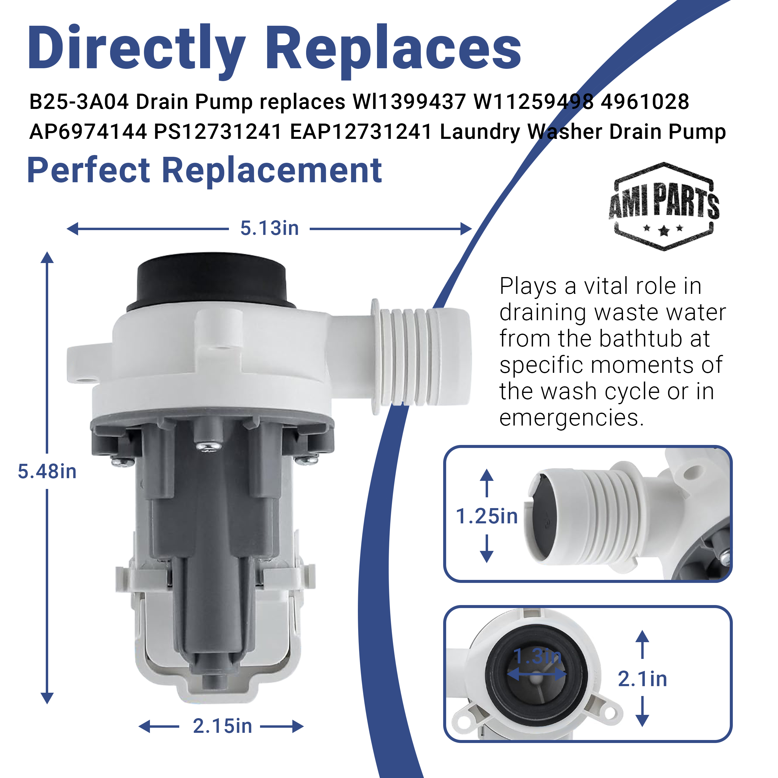 AMI PARTS® W11399437 W11259498 B25-3A04 Drain Pump Assembly Replace, Perfect Replacement for Compatibility