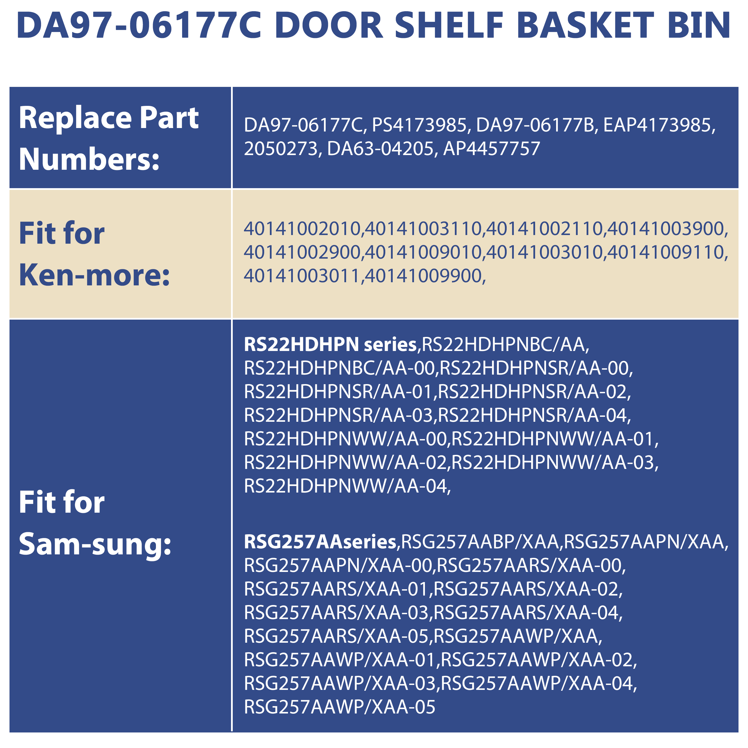 Included Components: 1 Pack DA97-06177C Refrigerator Door Bin Shelf