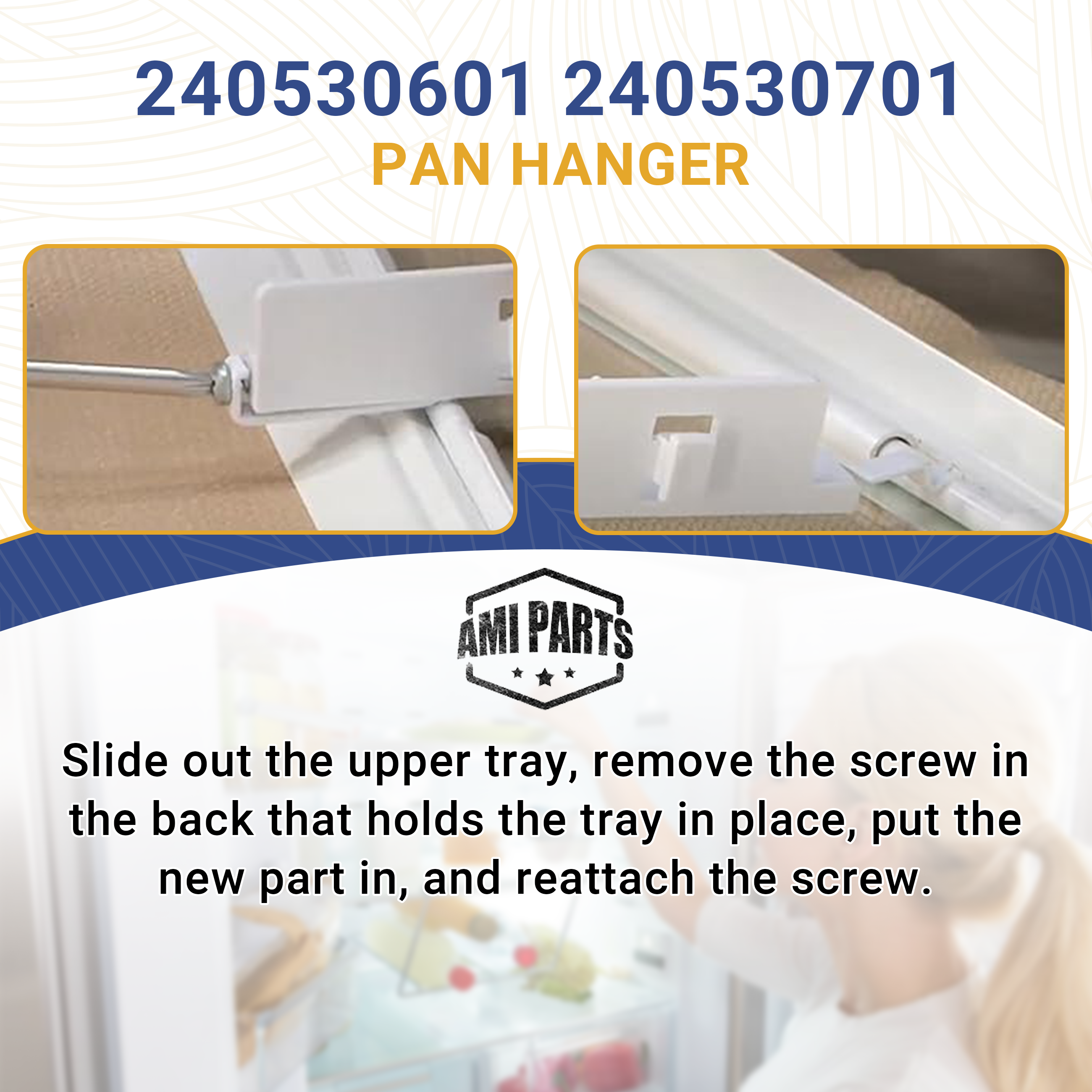 AMI PARTS® 240530601 240530701 Refrigerator Pan Hanger Replacement Parts Left and Right Combination Set (2 Pack)