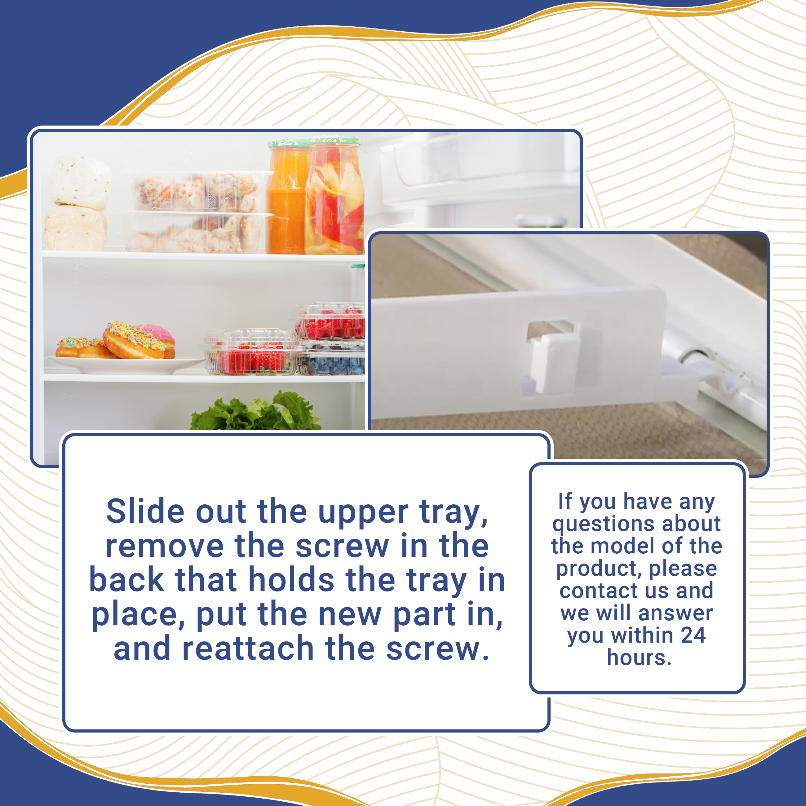 Benefits: The 240530601 Left-Side Pan Hanger Replacement is incredibly easy to install. Crafted from high-quality ABS plastic, it boasts exceptional sturdiness, a long service life, and enhanced safety. Our refrigerator pan hanger helps you organize your fridge’s storage space more effectively.