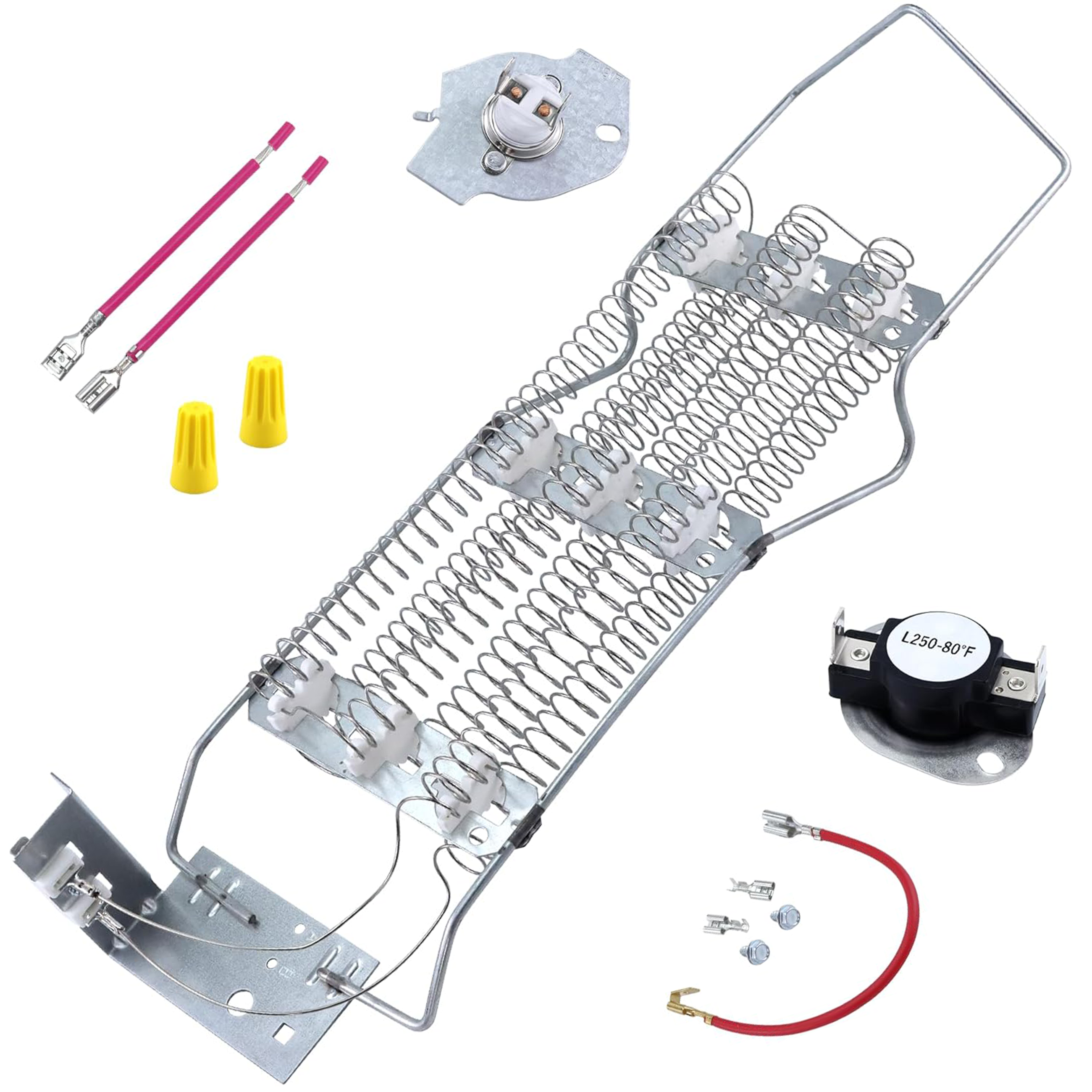 Contains: 4391960 WP4391960 Dryer heating element kit, 279457 Heating element wire kit, 279816 dryer thermal fuse and thermostat replacement part kit