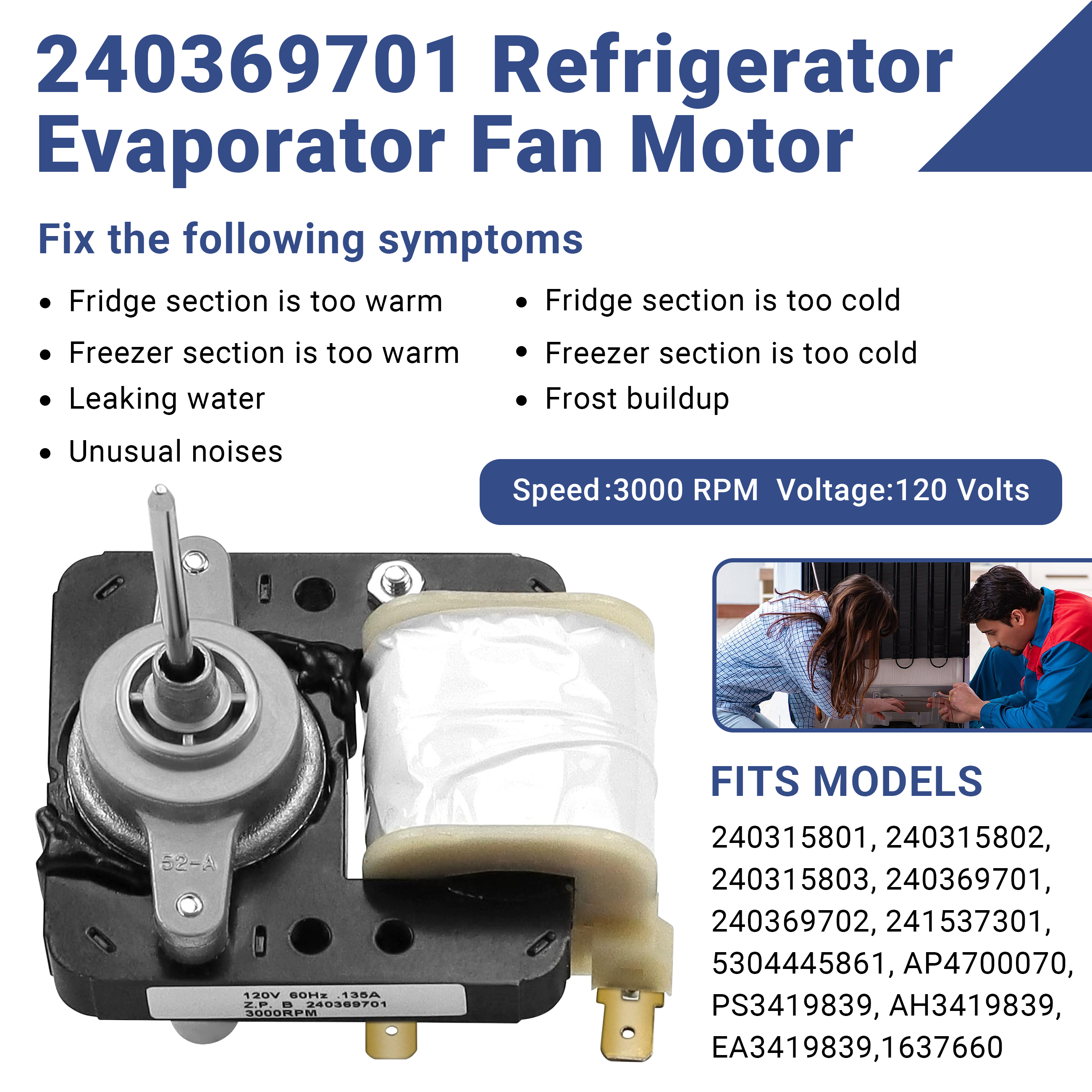 AMI PARTS® 240369701 Refrigerator Evaporator Fan Motor Performance Optimization
