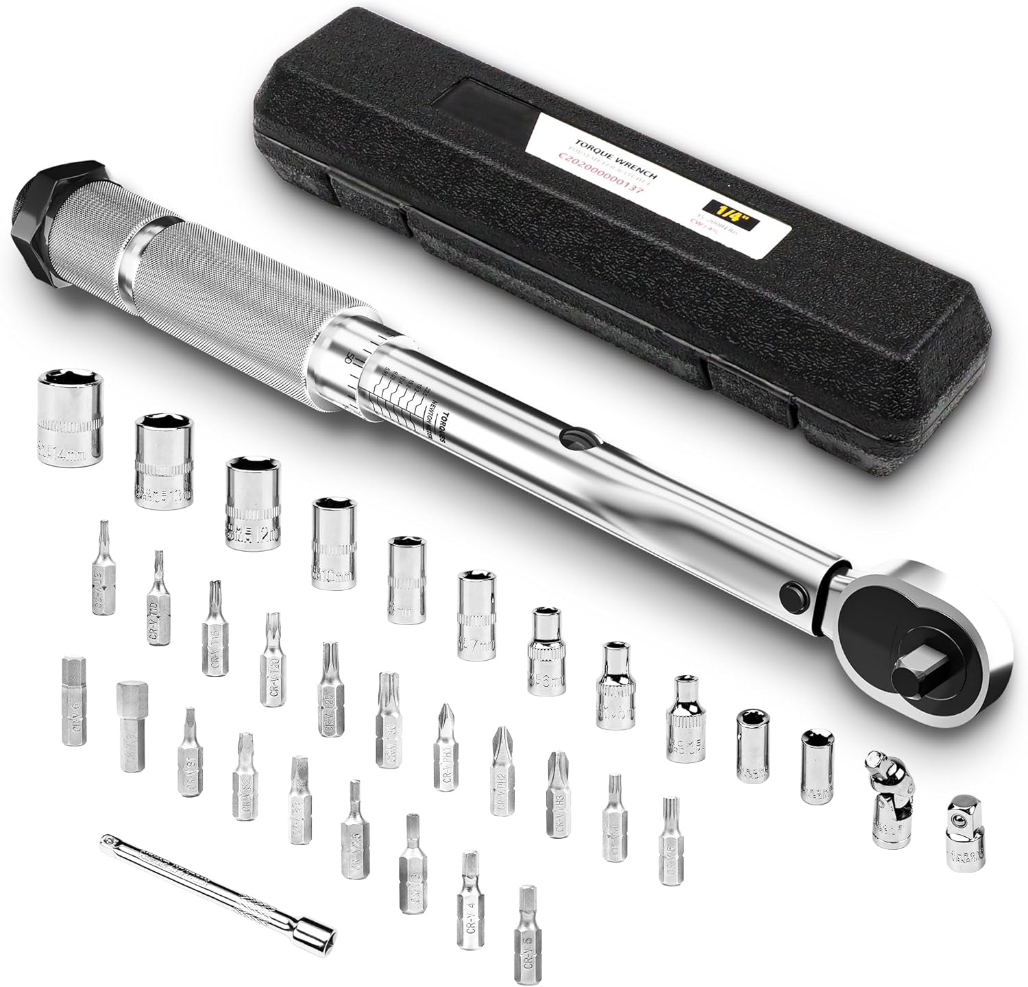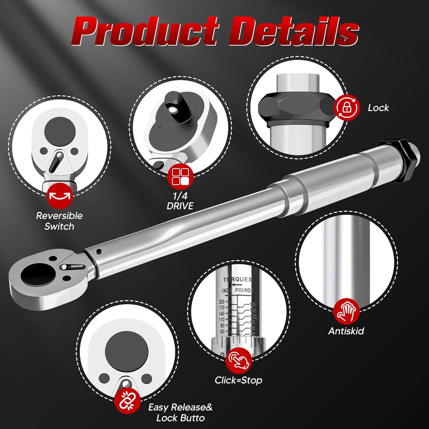 AMI PARTS Torque Wrench 1/4-inch, 35-Piece Drive Click Torque Wrench Set, Bidirectional Torque Wrench 3.95-22.5 Nm/35-200 lb-ft, 72-Tooth, ±4% High-Precision Torque Wrench