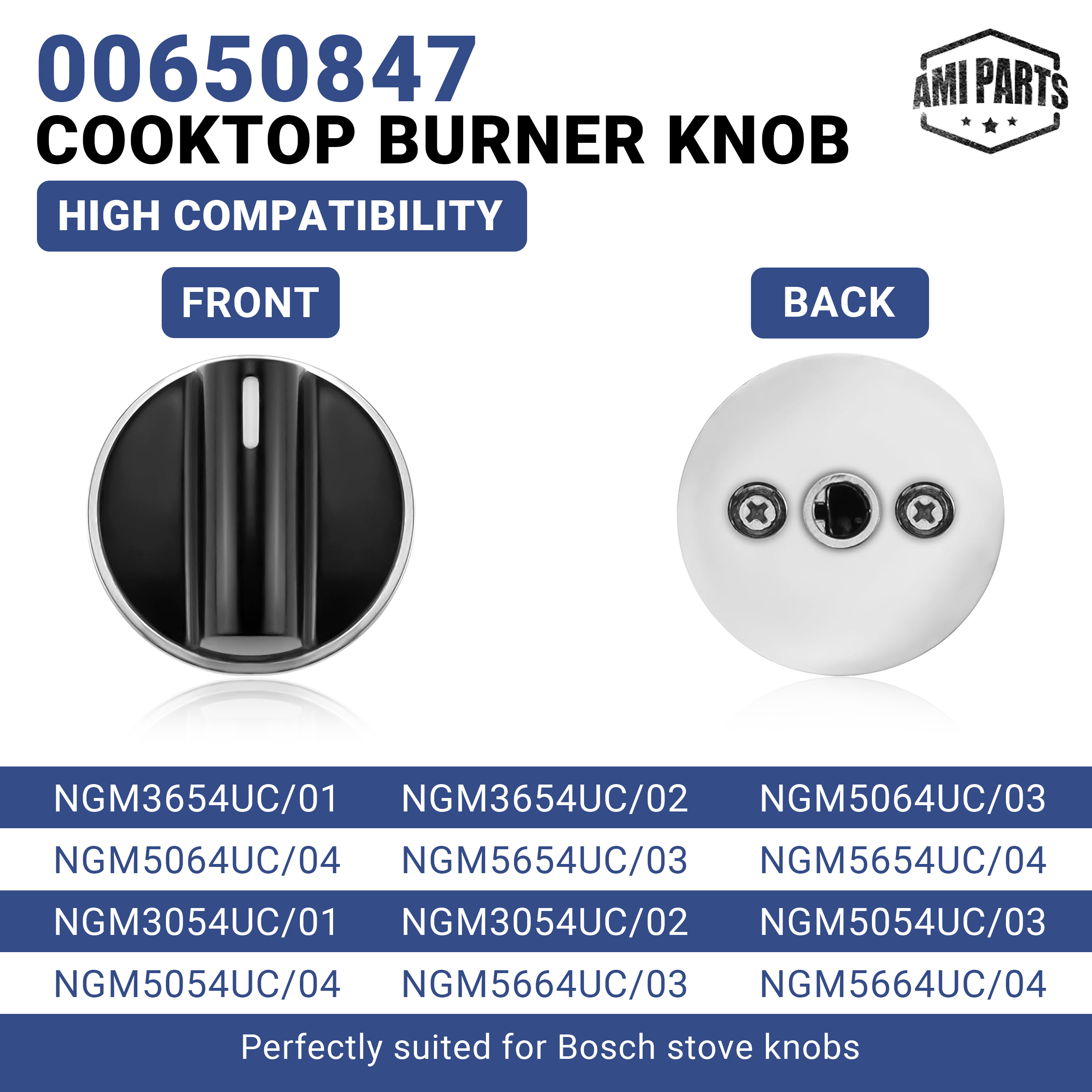 AMI PARTS® 00650847 Cooktop Stove Knobs Fit for Bosch Stove Knob, Durable Stove Control Knobs, 5 PCS