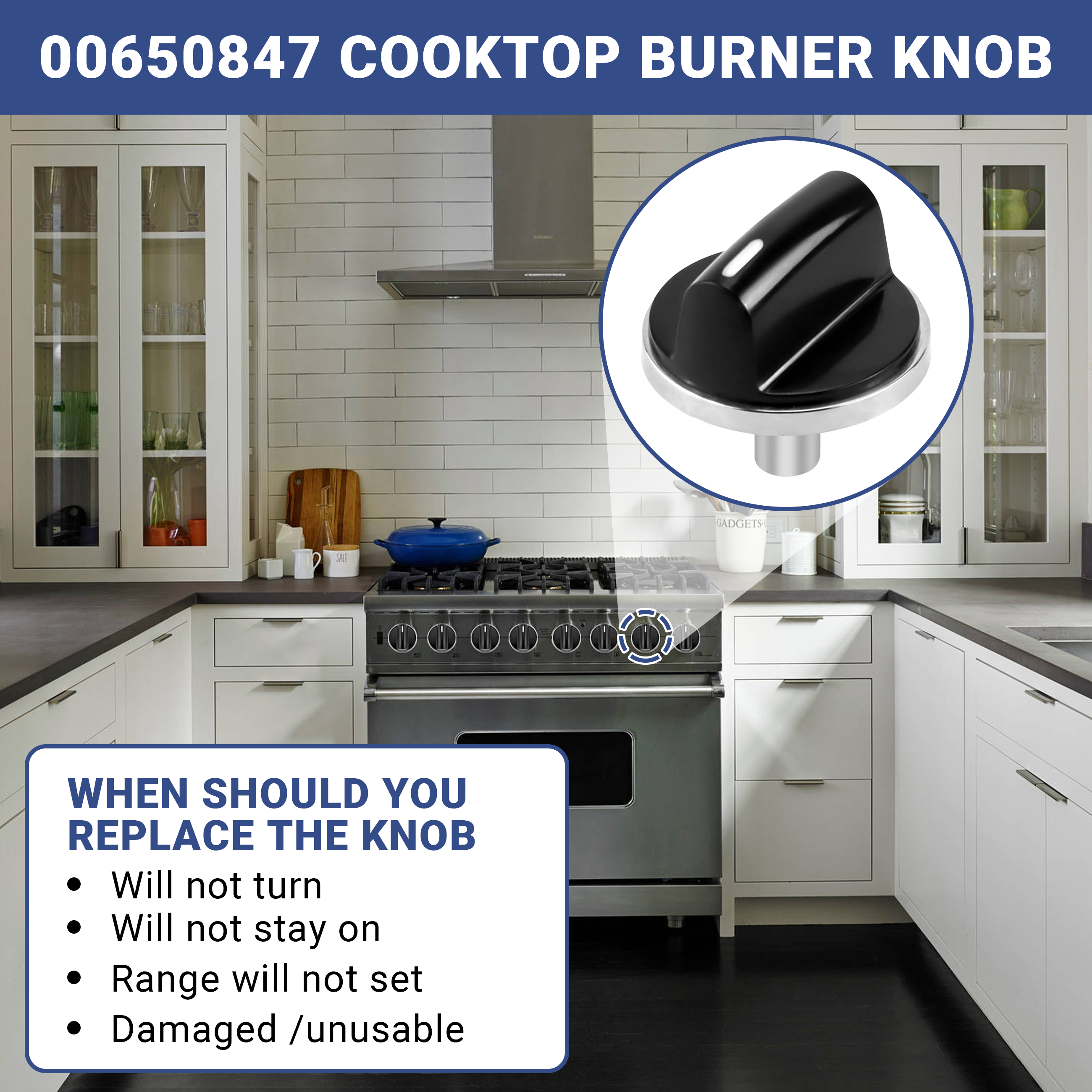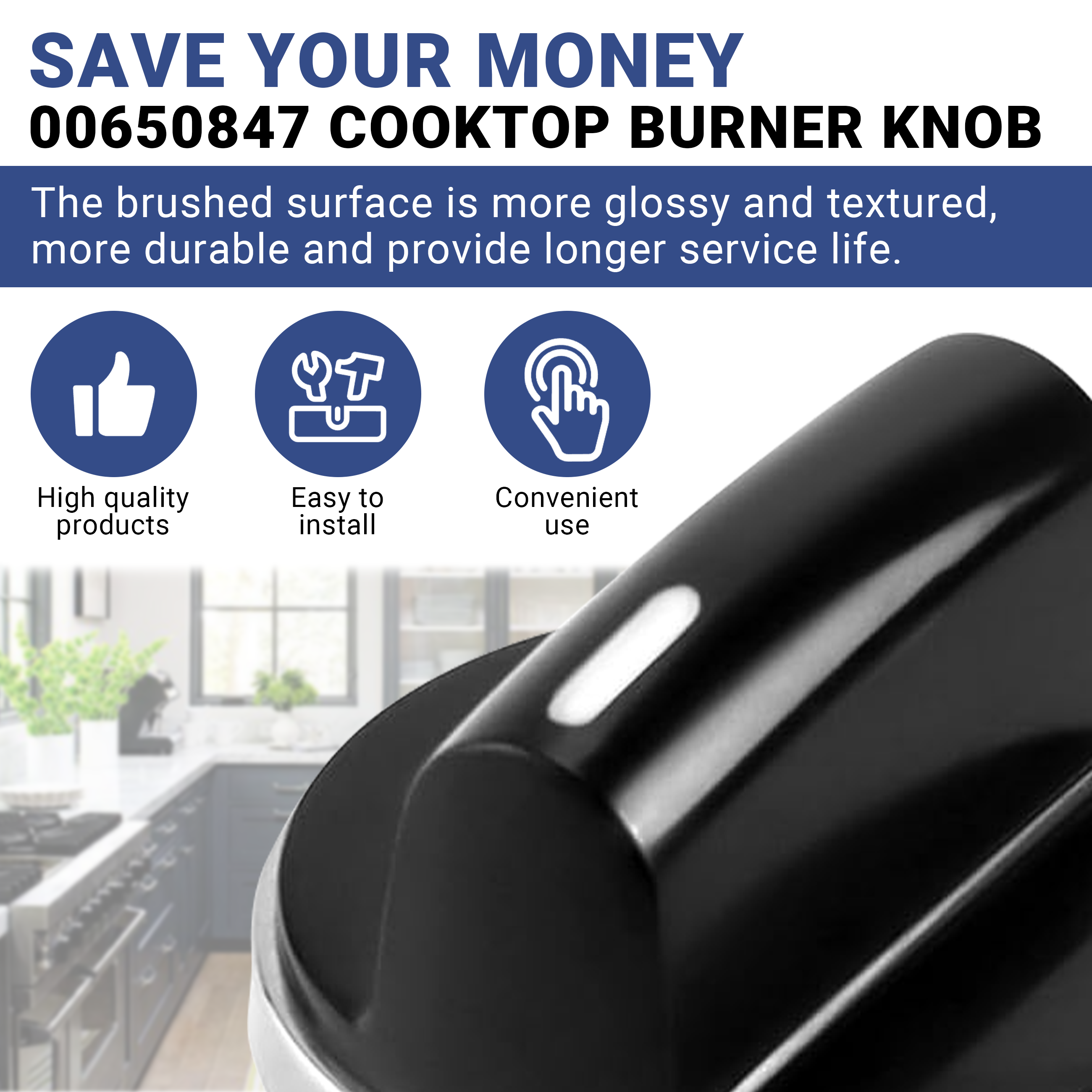 Benefits: 00650847 Cooktop Knobs Cooktop Stove Knobs made of premium materials, these knobs are sturdy and long-wearing, with outstanding abrasion resistance to stand up to daily use.