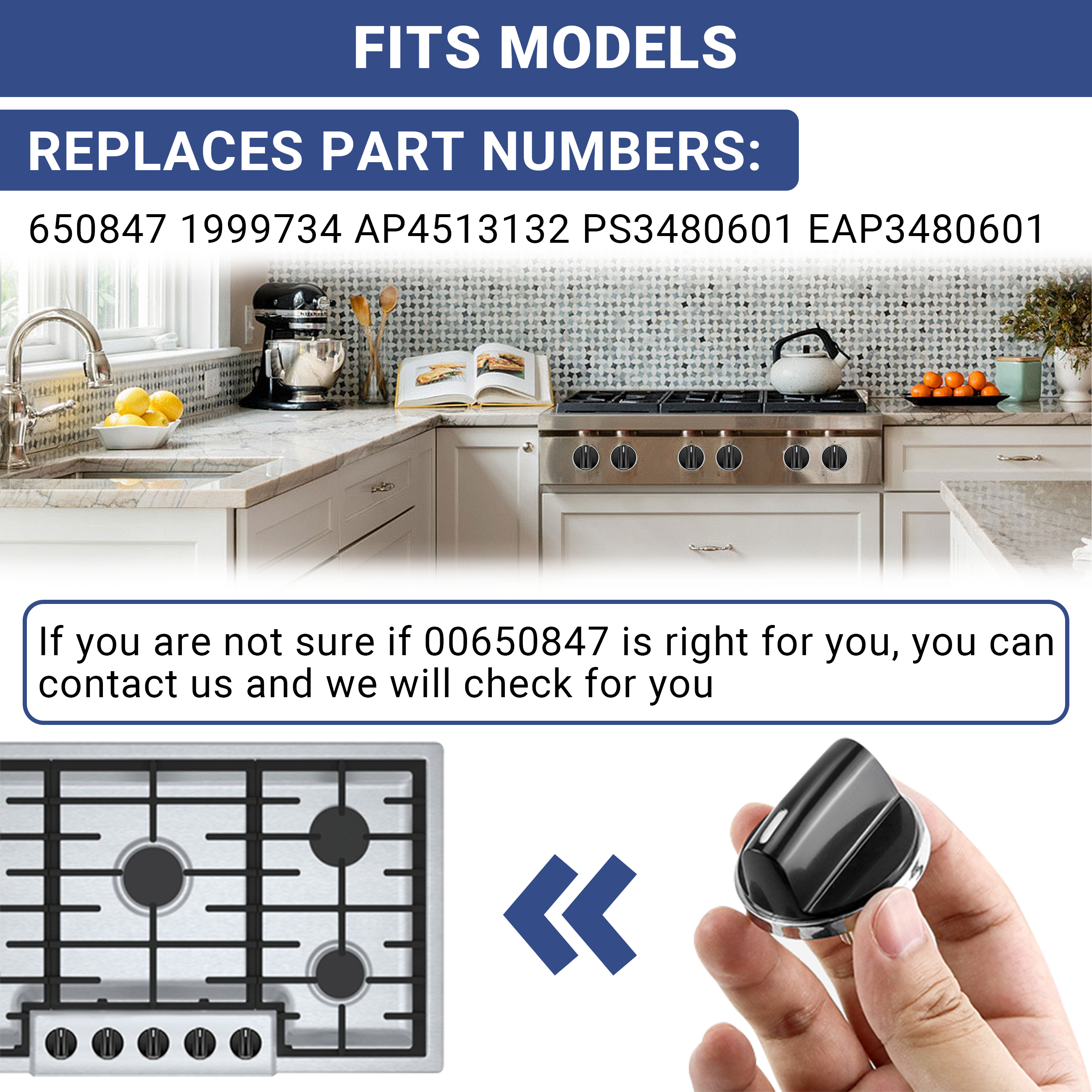 Cooktop knobs replace 00650847, 650847, 1999734, AP4513132, AH3480601,PS3480601, PS8731208, PD00000010,EAP3480601, EA3480601