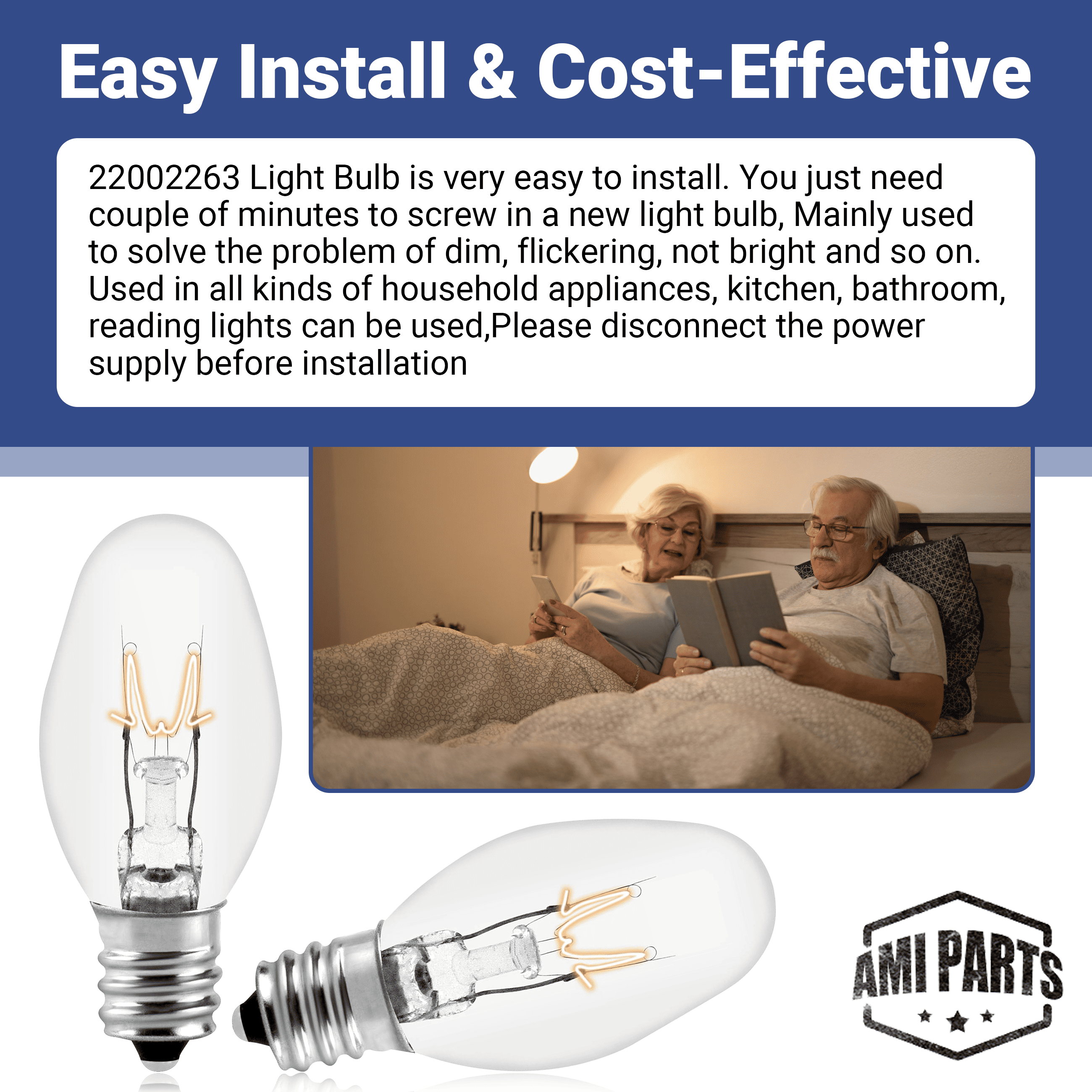 AMI PARTS® 22002263 Dryer Light Bulb 10W 120V Light Bulb Replacement Fit for Home