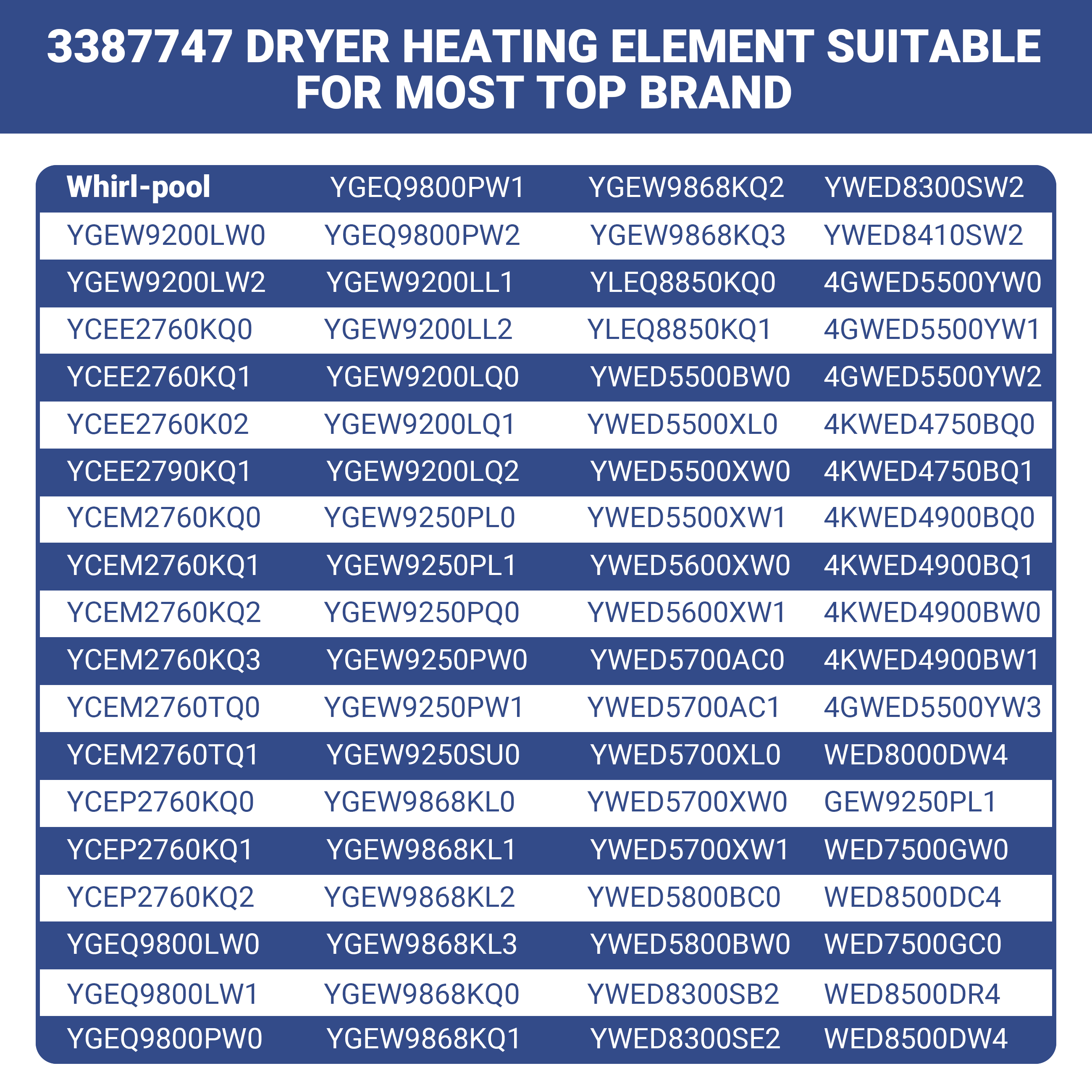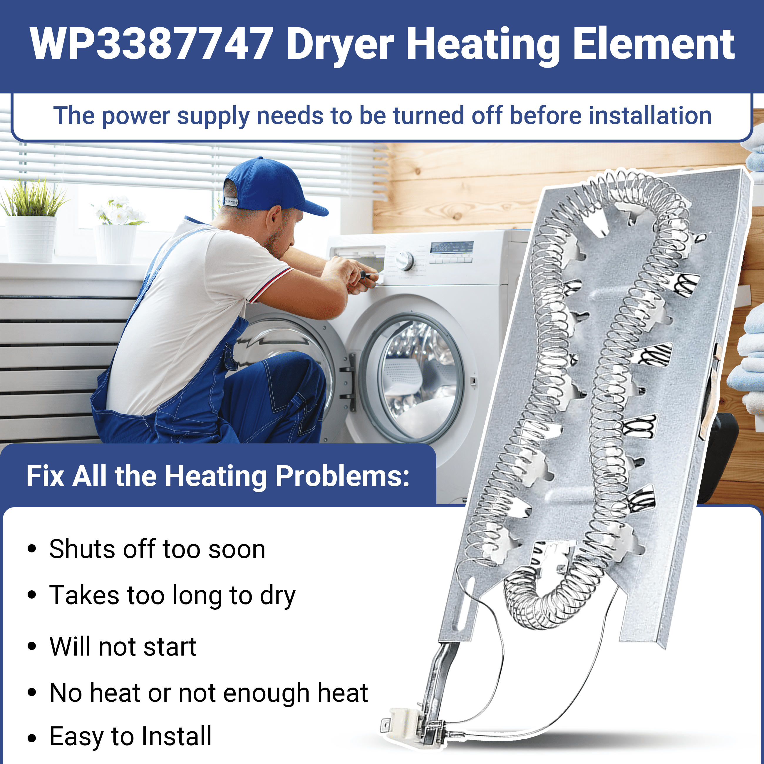 Contains: 1*3387747 wp3387747 Dryer Heating Element