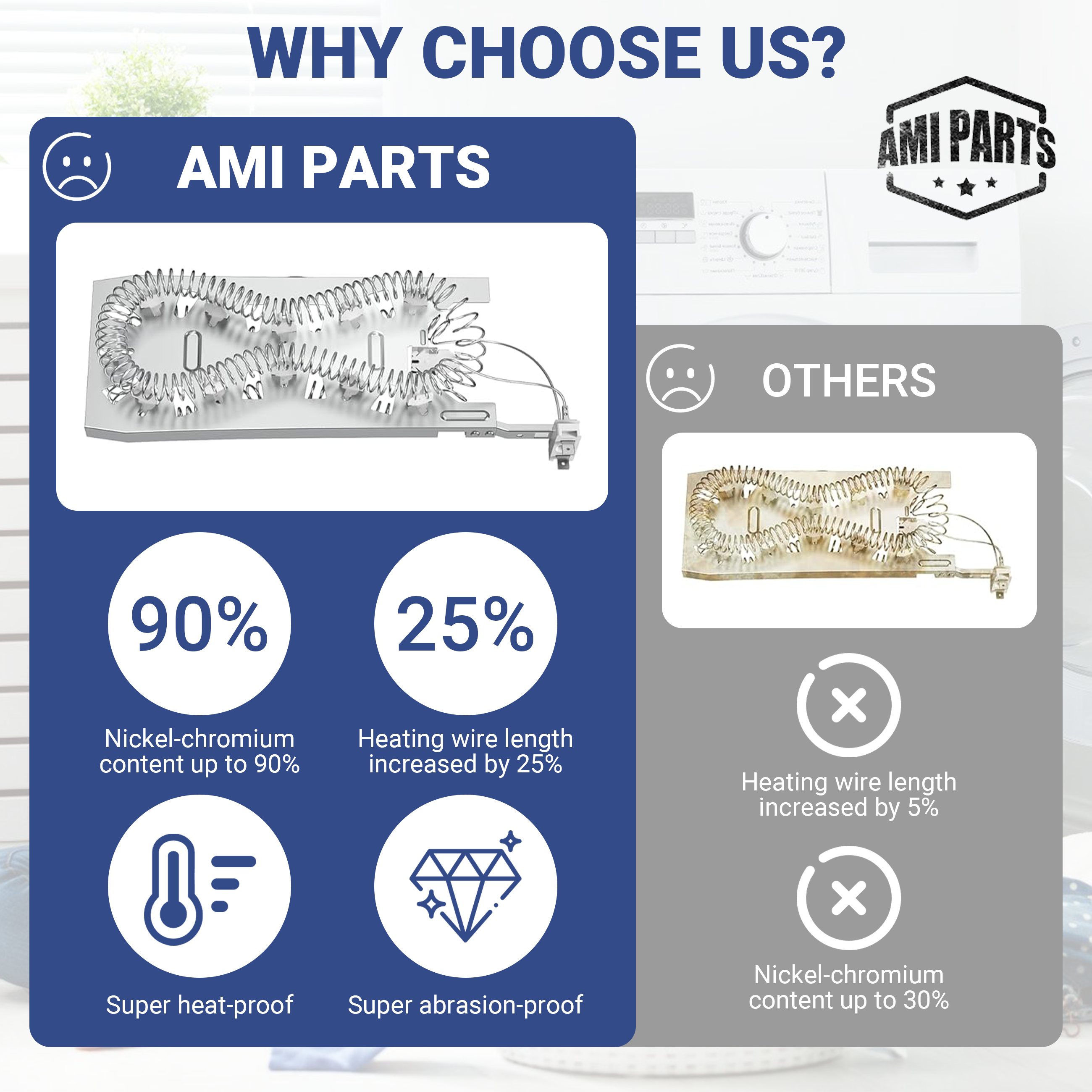 AMI PARTS® 3387747 W11344457 Dryer Heating Element Replacement Part, Extremely Easy to Use