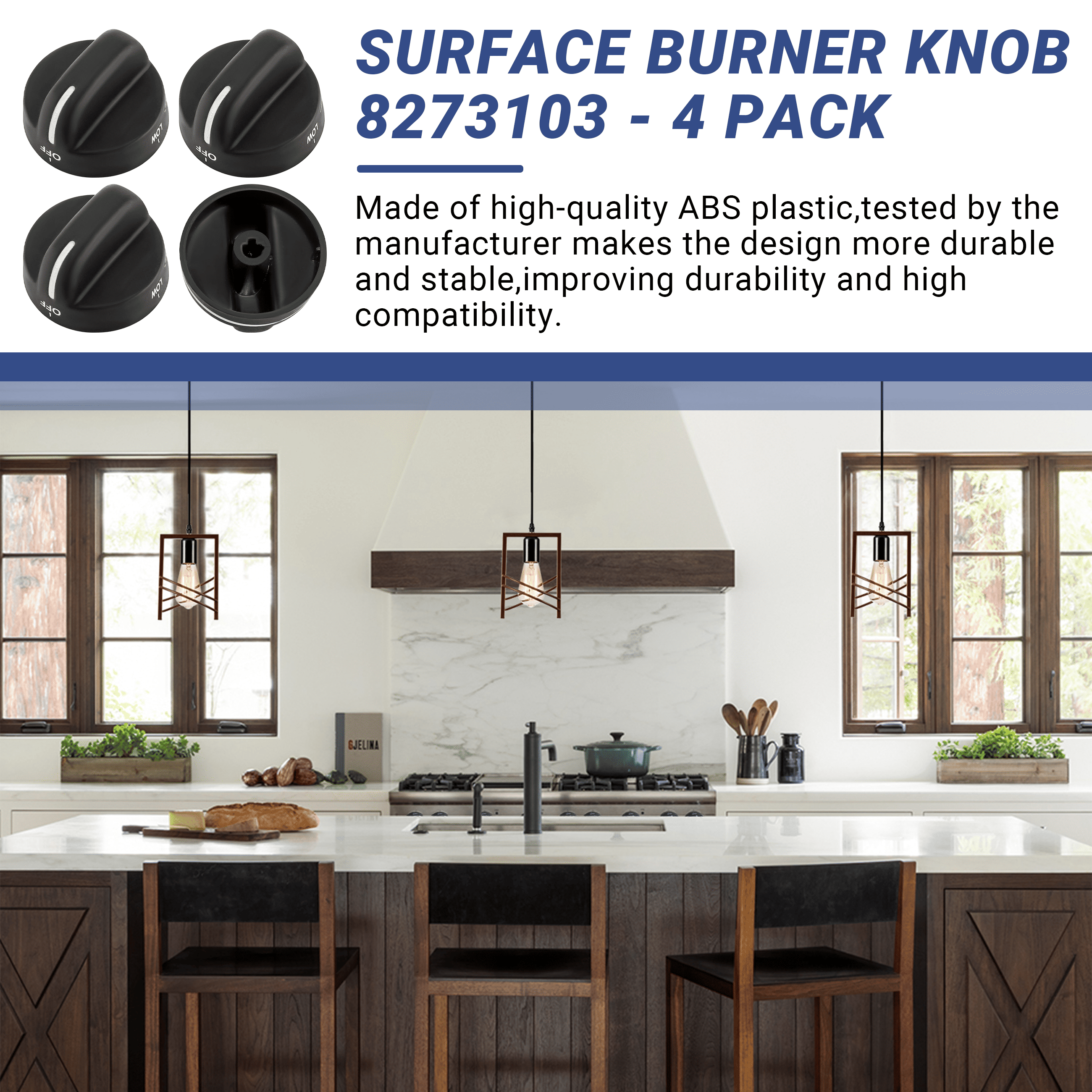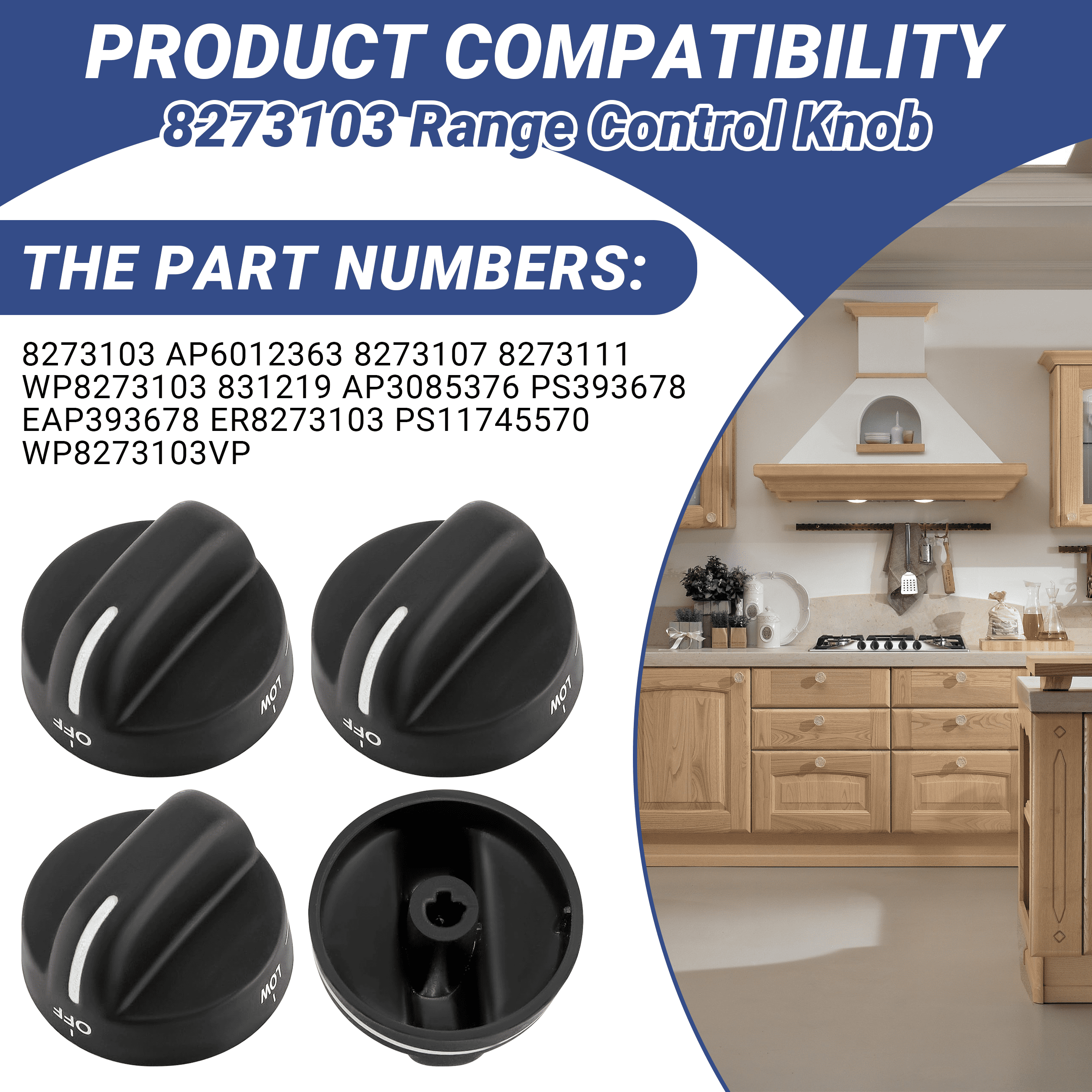 AMI PARTS® 4PCS 8273103 Gas Stove Knob, Compatible with Whirlpool Stoves/Ovens PS11745570 PS11745570 WP8273103VP