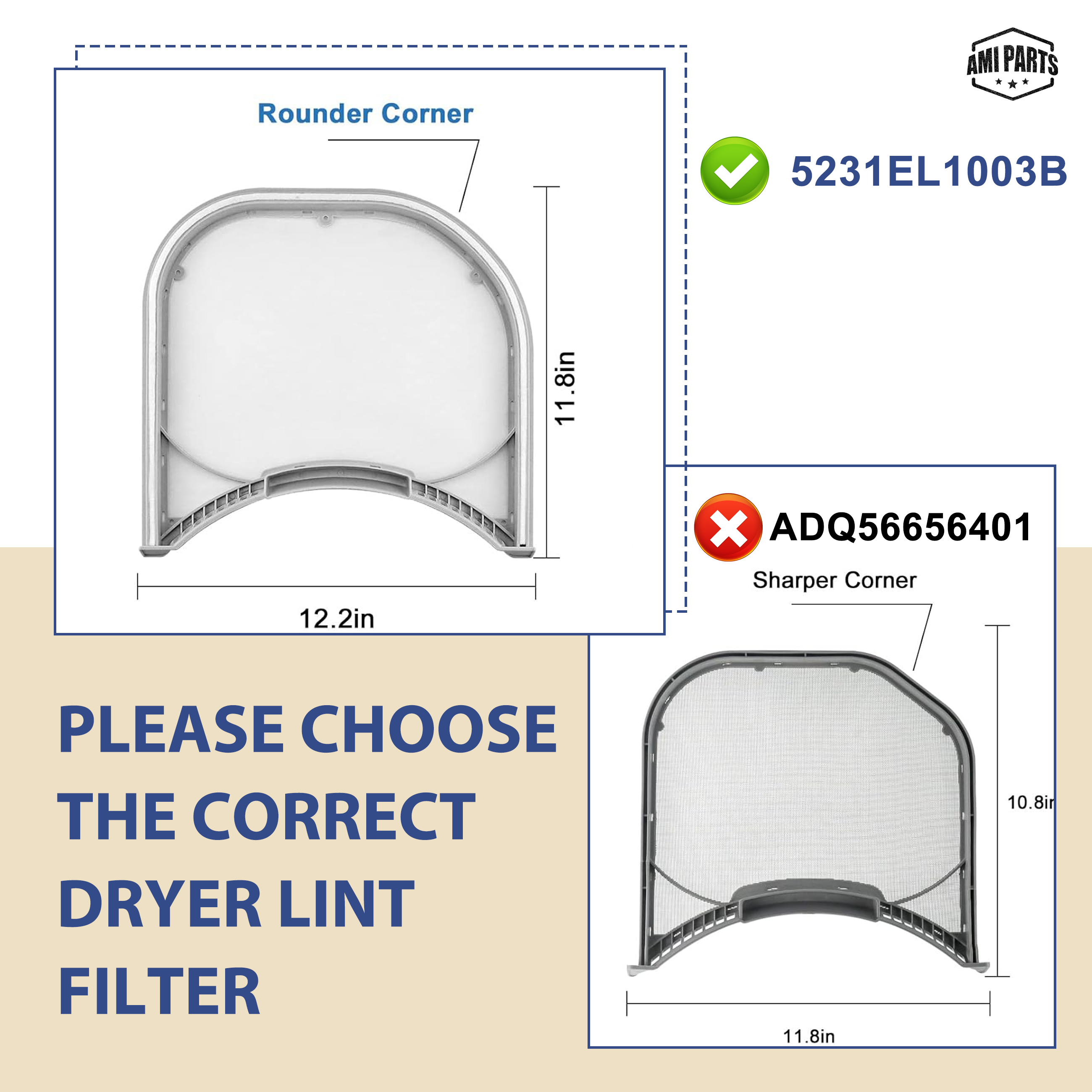 AMI PARTS® 5231EL1003B Dryer Lint Filter, More Convenient and More Reliable