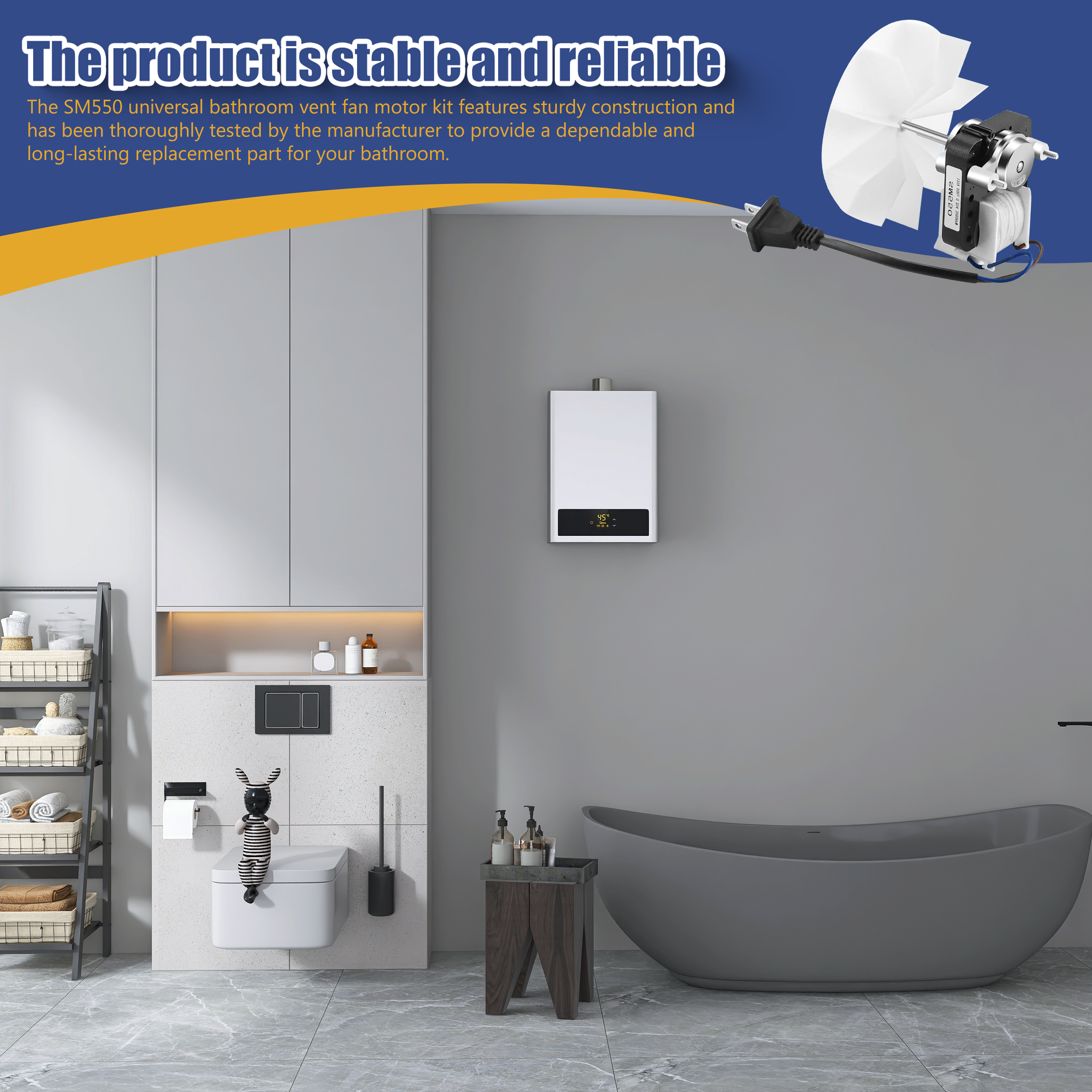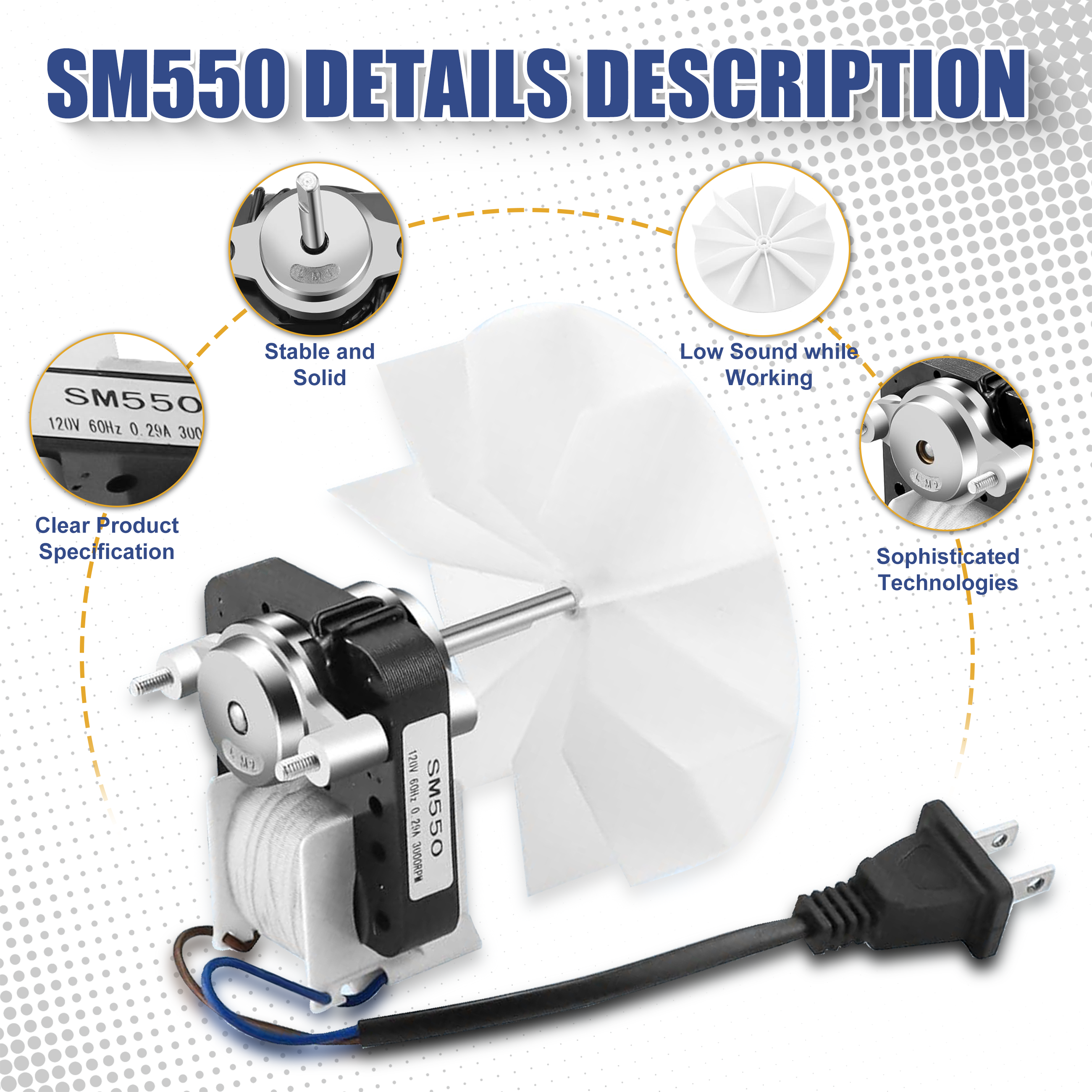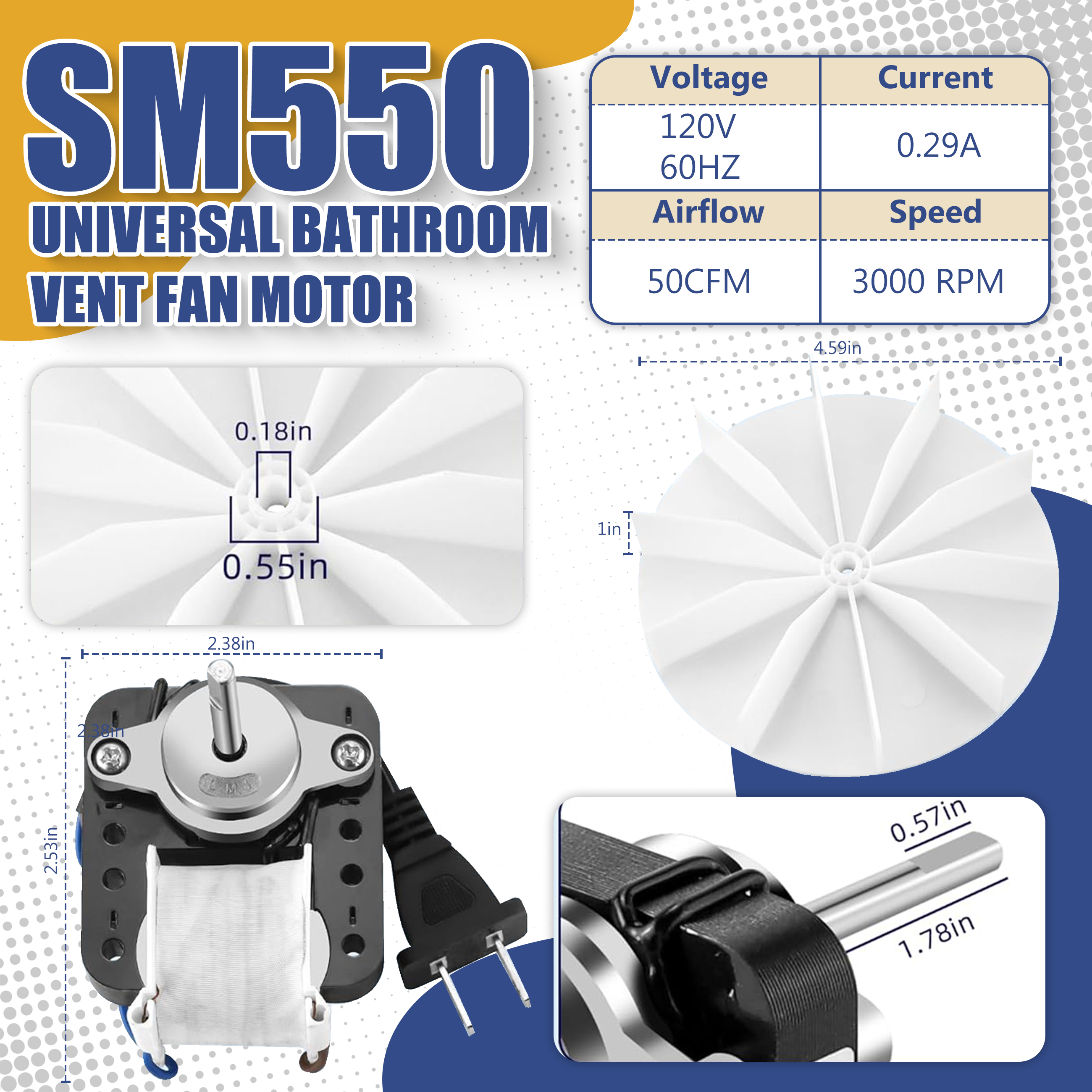 AMI PARTS SM550 Bathroom Fan Motor: Newly upgraded with advanced core technology. The motor features a robust and sturdy structure, delivering exceptional noise control during operation for a quiet, unobtrusive experience. Product specifications are clearly defined, with performance parameters documented for enhanced reliability, comprehensively elevating your bathroom ventilation experience.