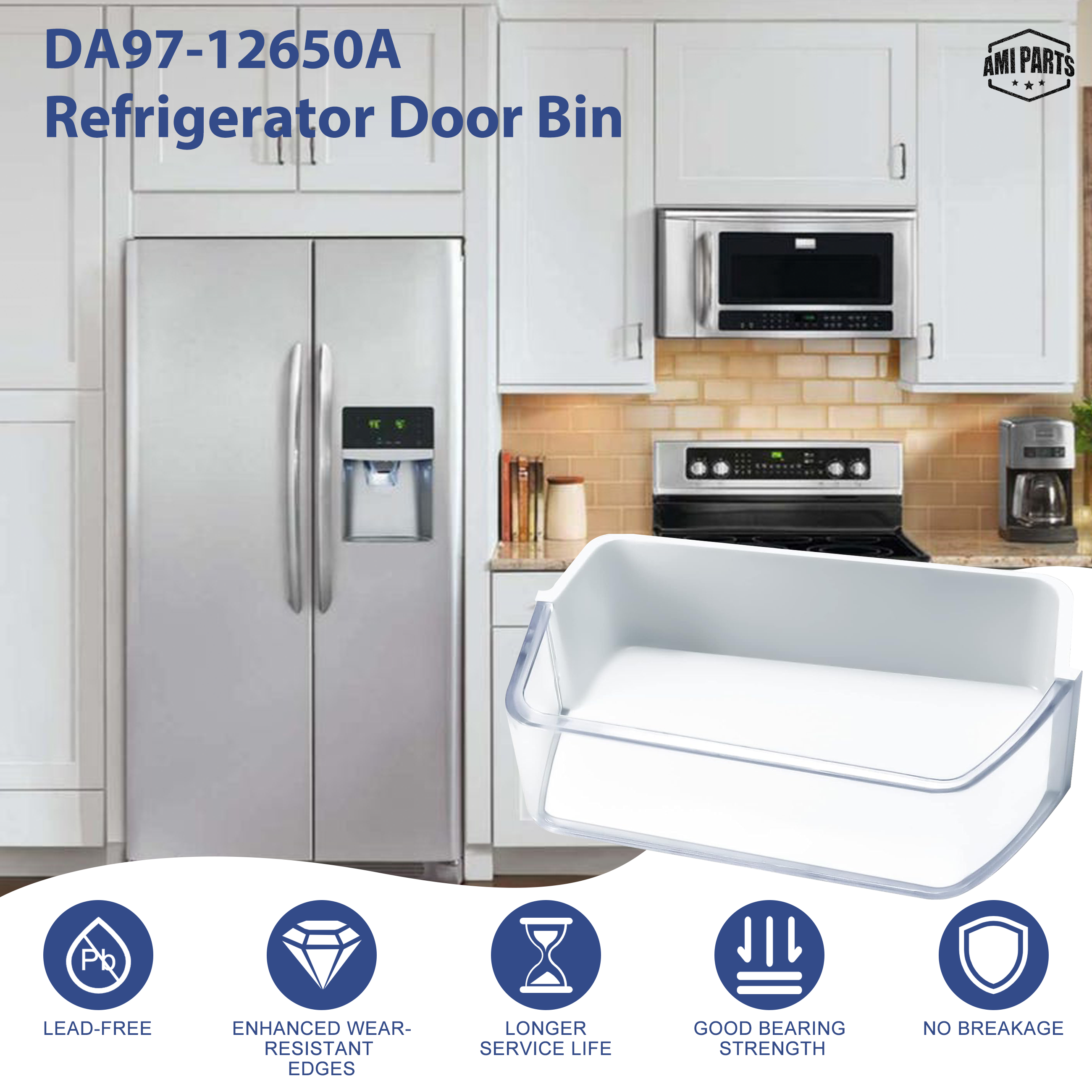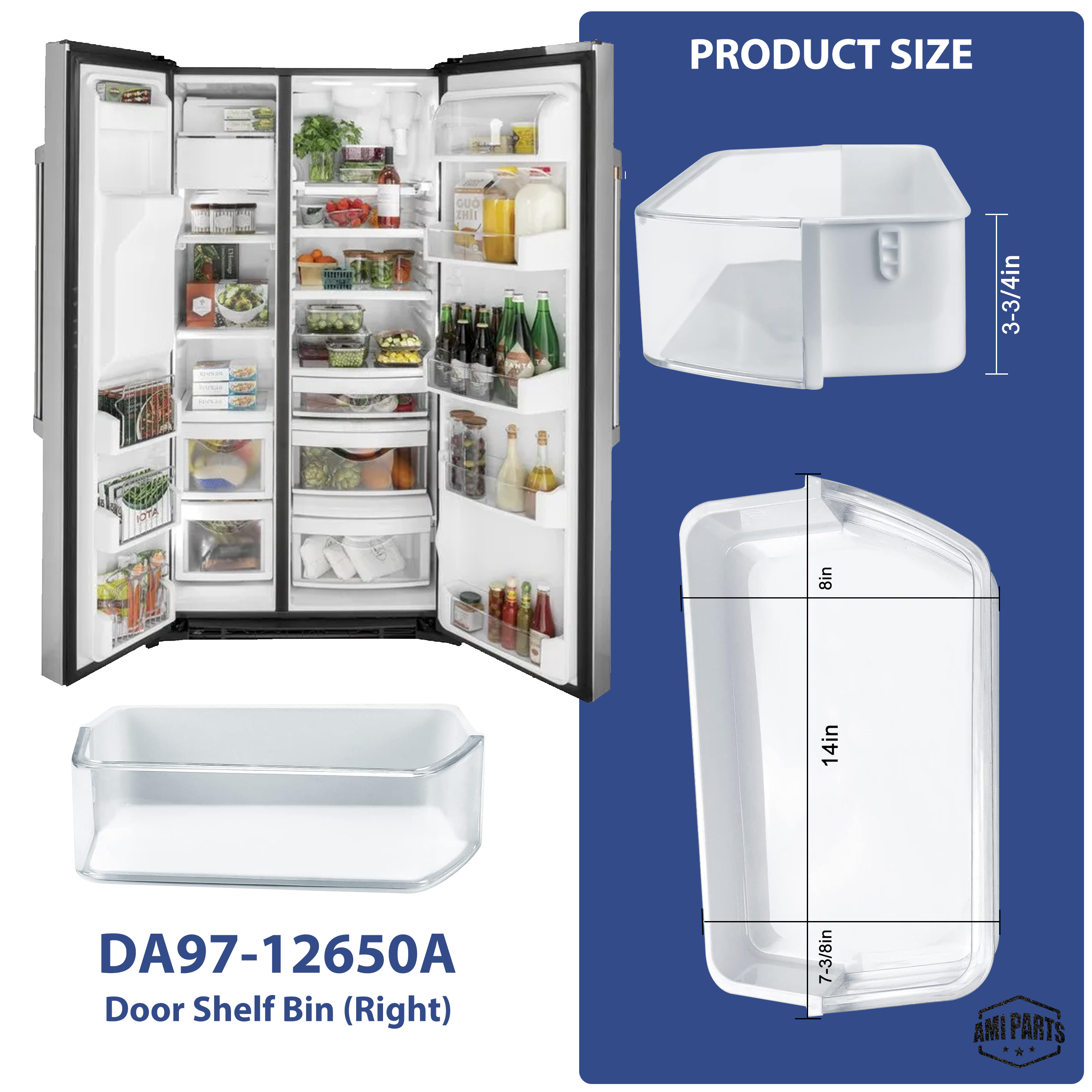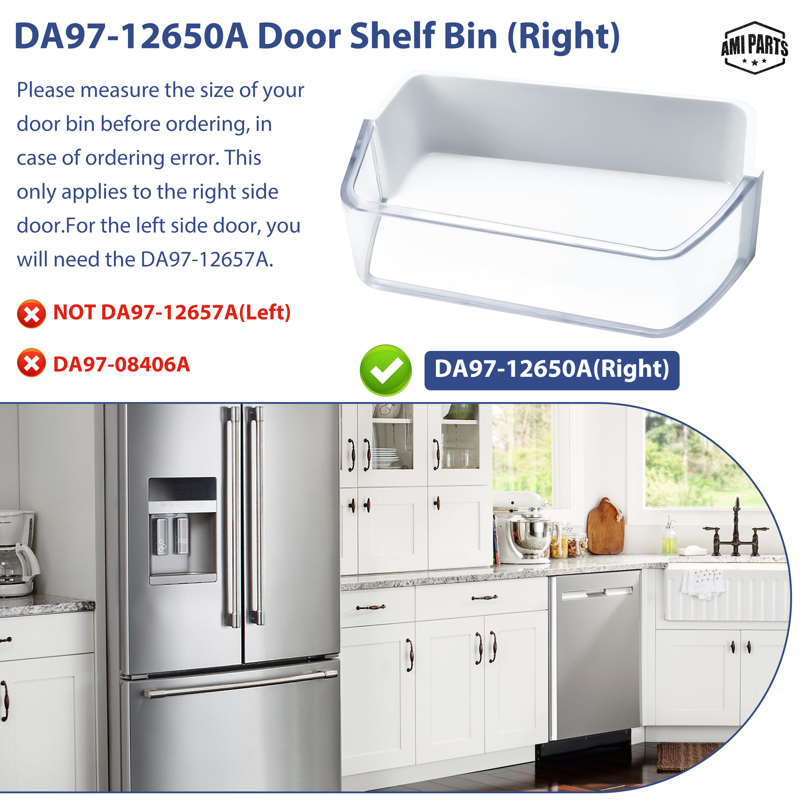 AMI PARTS® DA97-12650A Upgraded Refrigerator Door Bin (Right), Fits Samsung Fridge Door Shelf Replacements