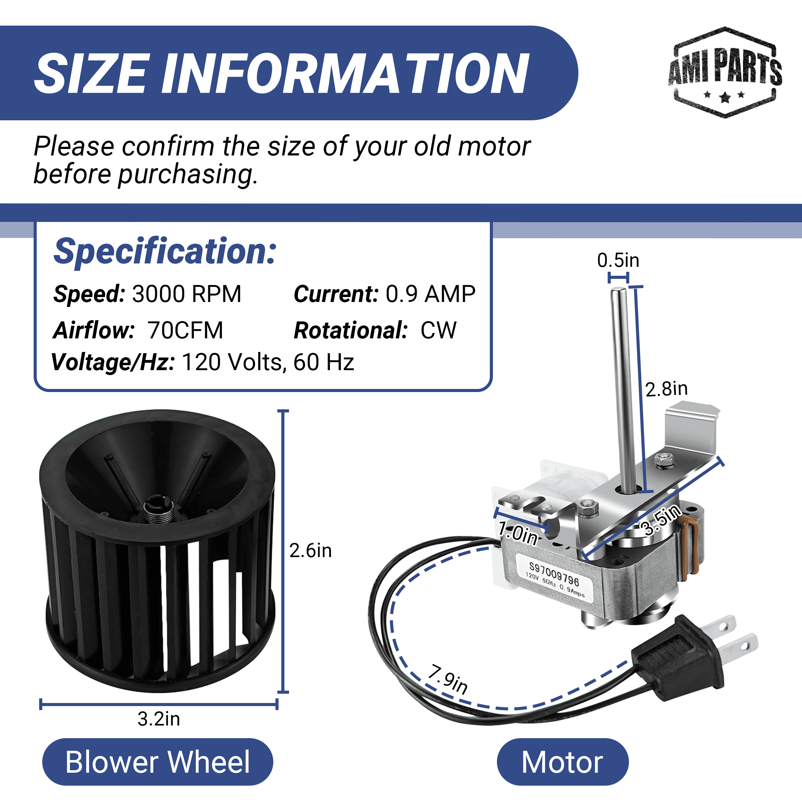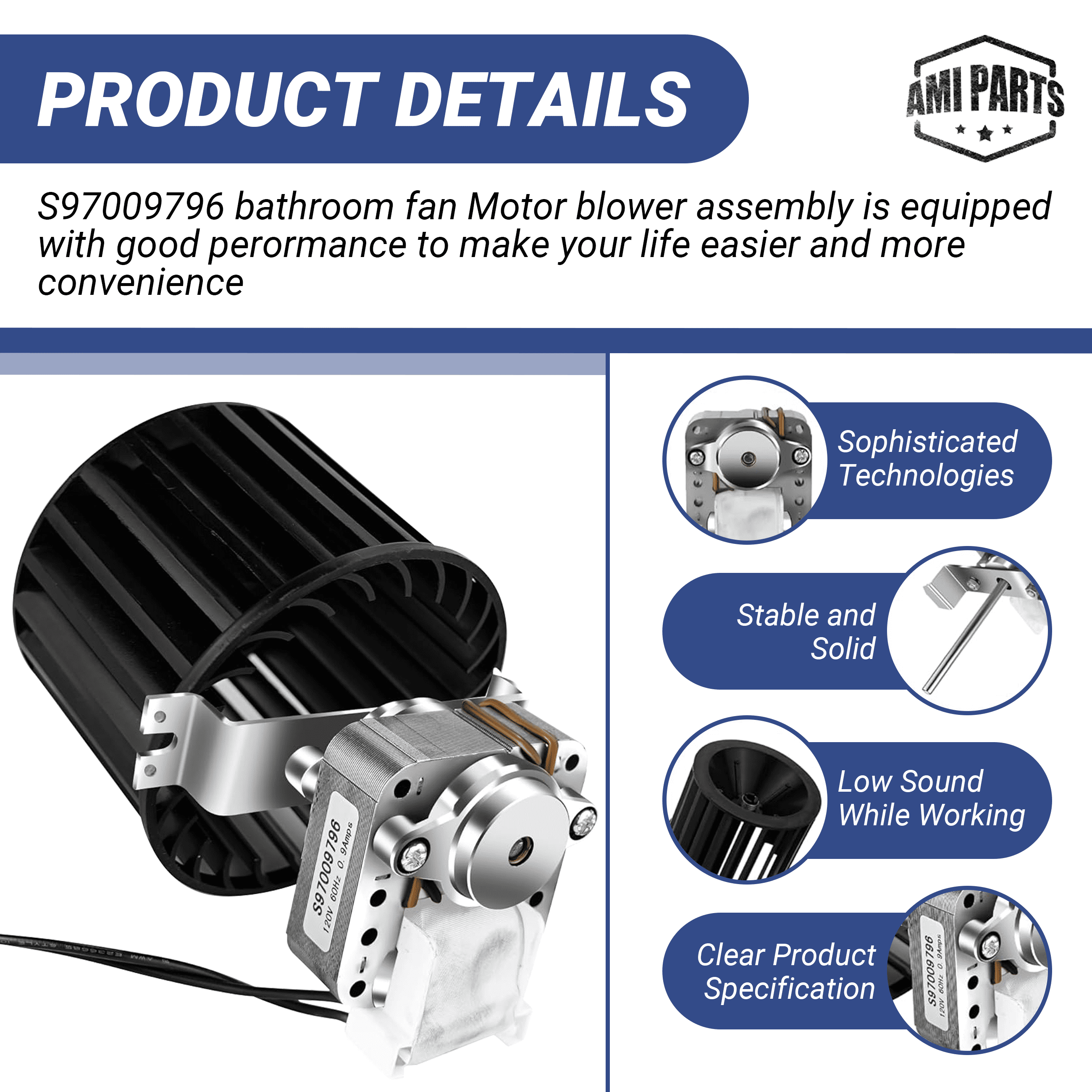 AMI PARTS® Upgraded S97009796 Bathroom Fan Motor Blower Kit, Suitable for Bro-an Nu-Tone Brands
