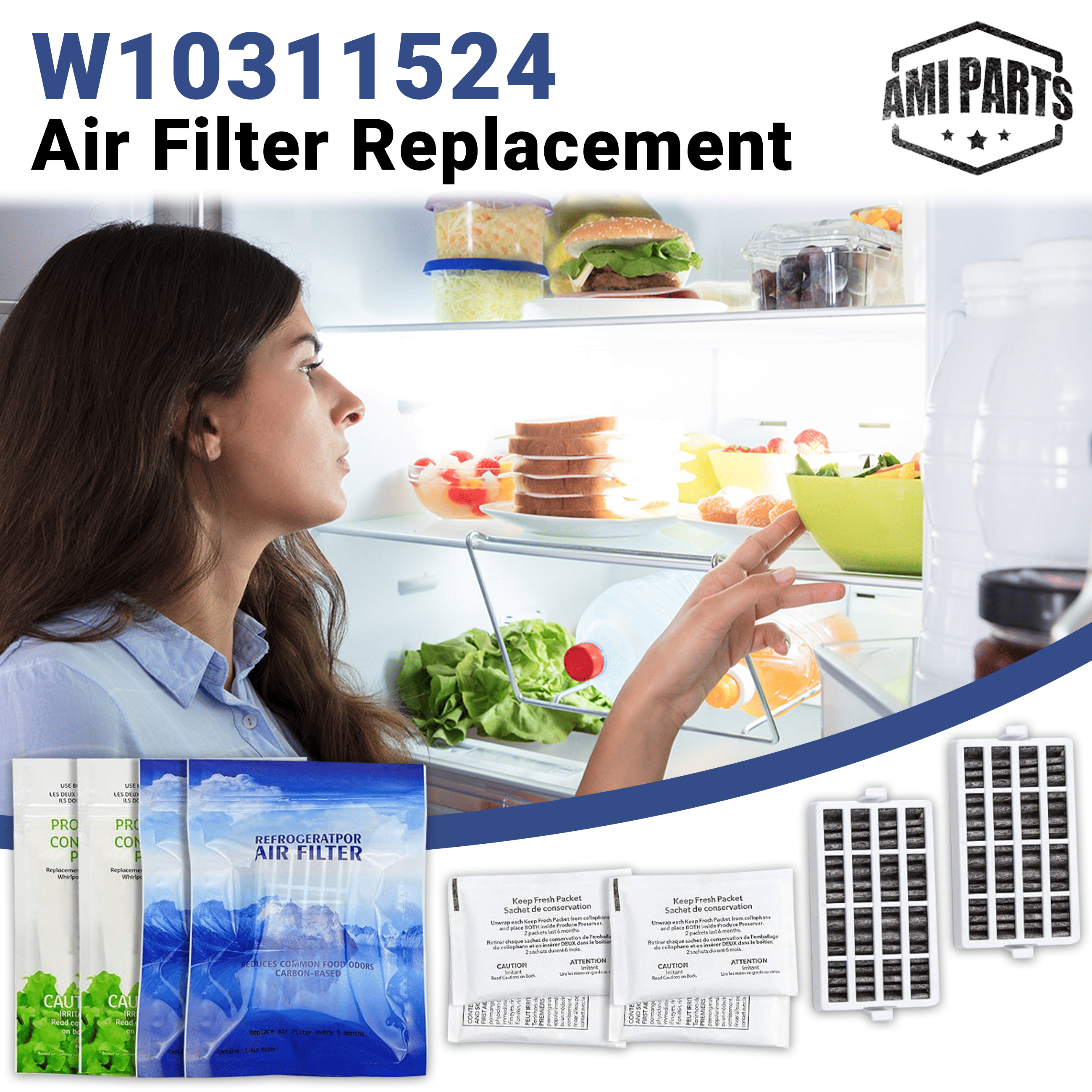 AMI PARTS® W10311524 Refrigerator Air Filter Replacement W10346771A Fresh Flow Produce Preserver