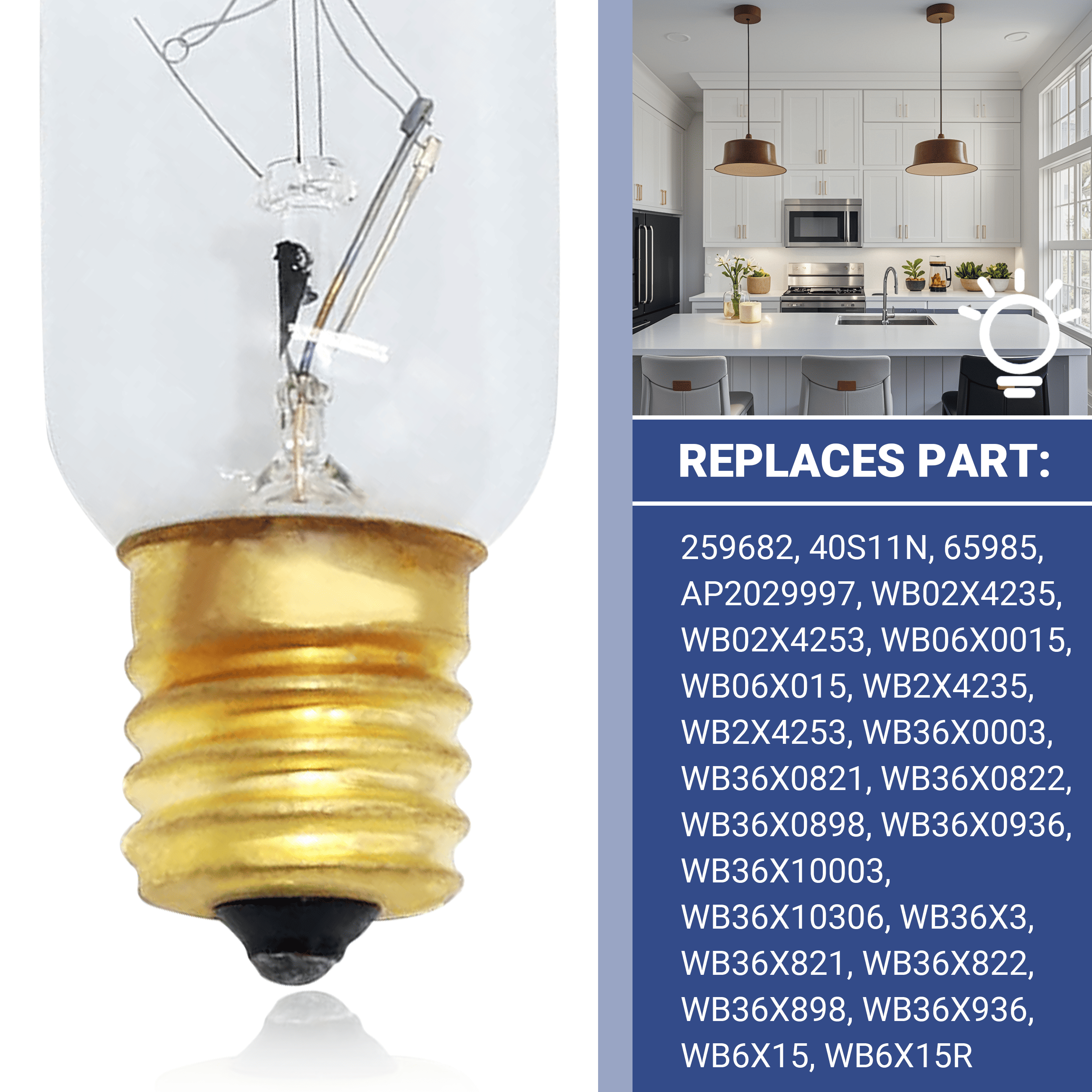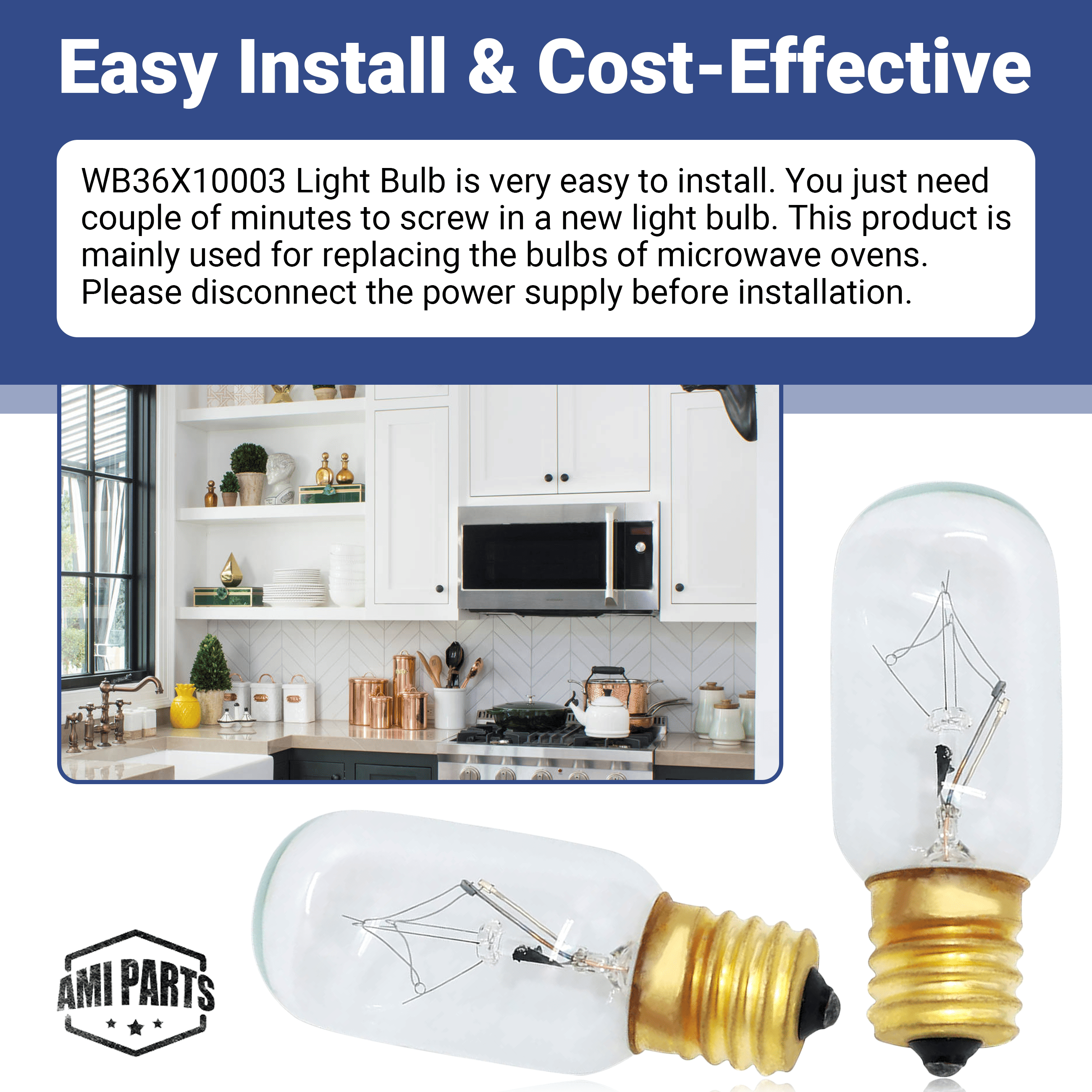 AMI PARTS® WB36X10003 Microwave Light Bulb, Replacement for Microwave Oven Lighting 40W E17