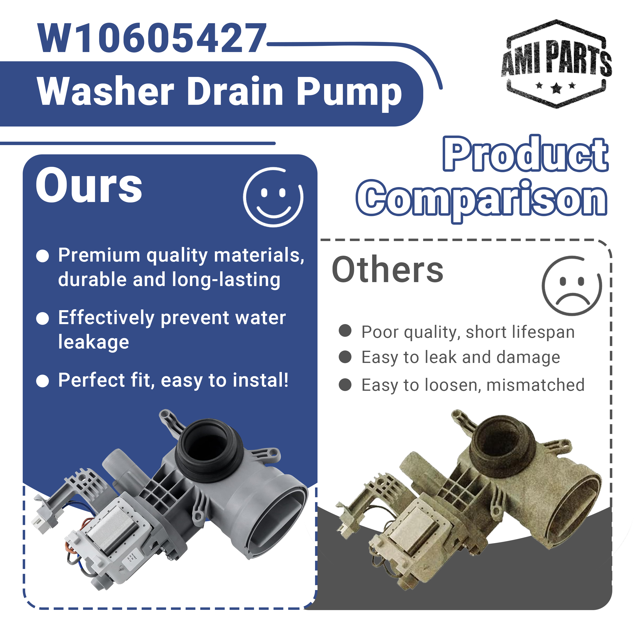 AMI PARTS® WPW10605427 W10425238 Washing Machine Water Pump, Compatible with Select Washing Machine Models