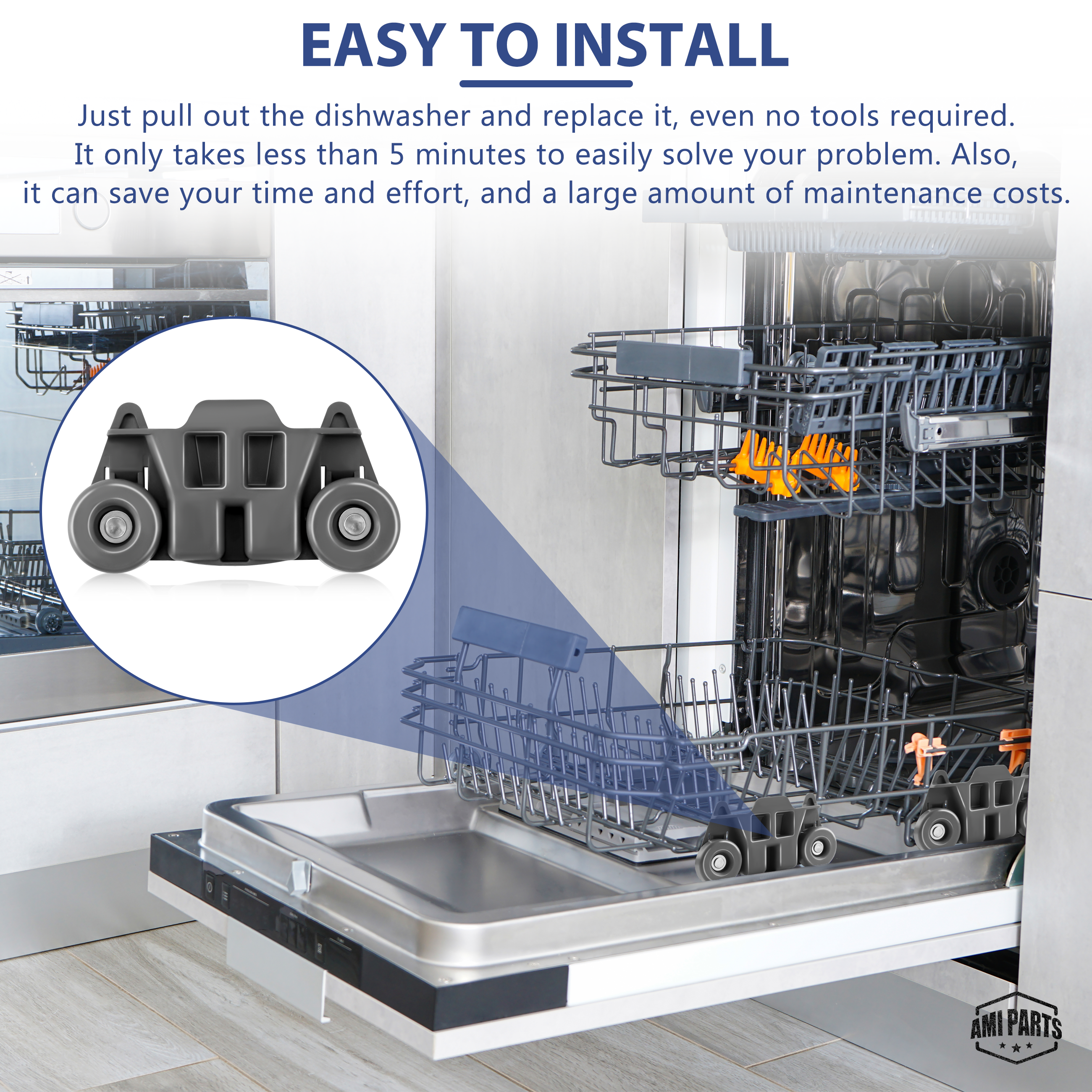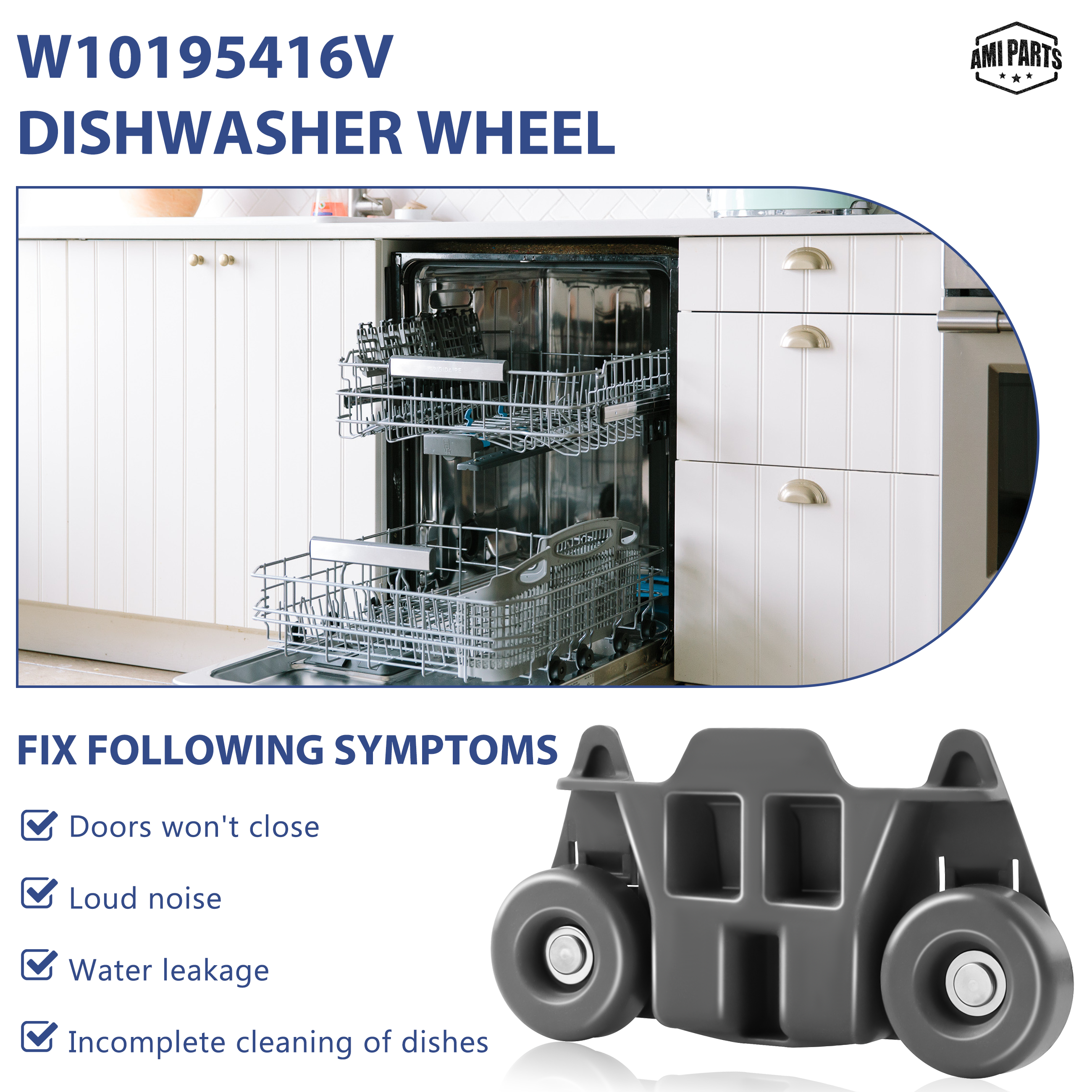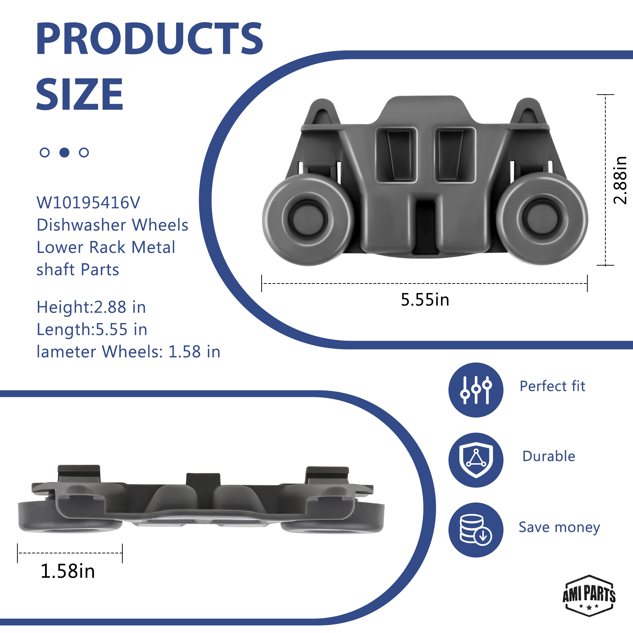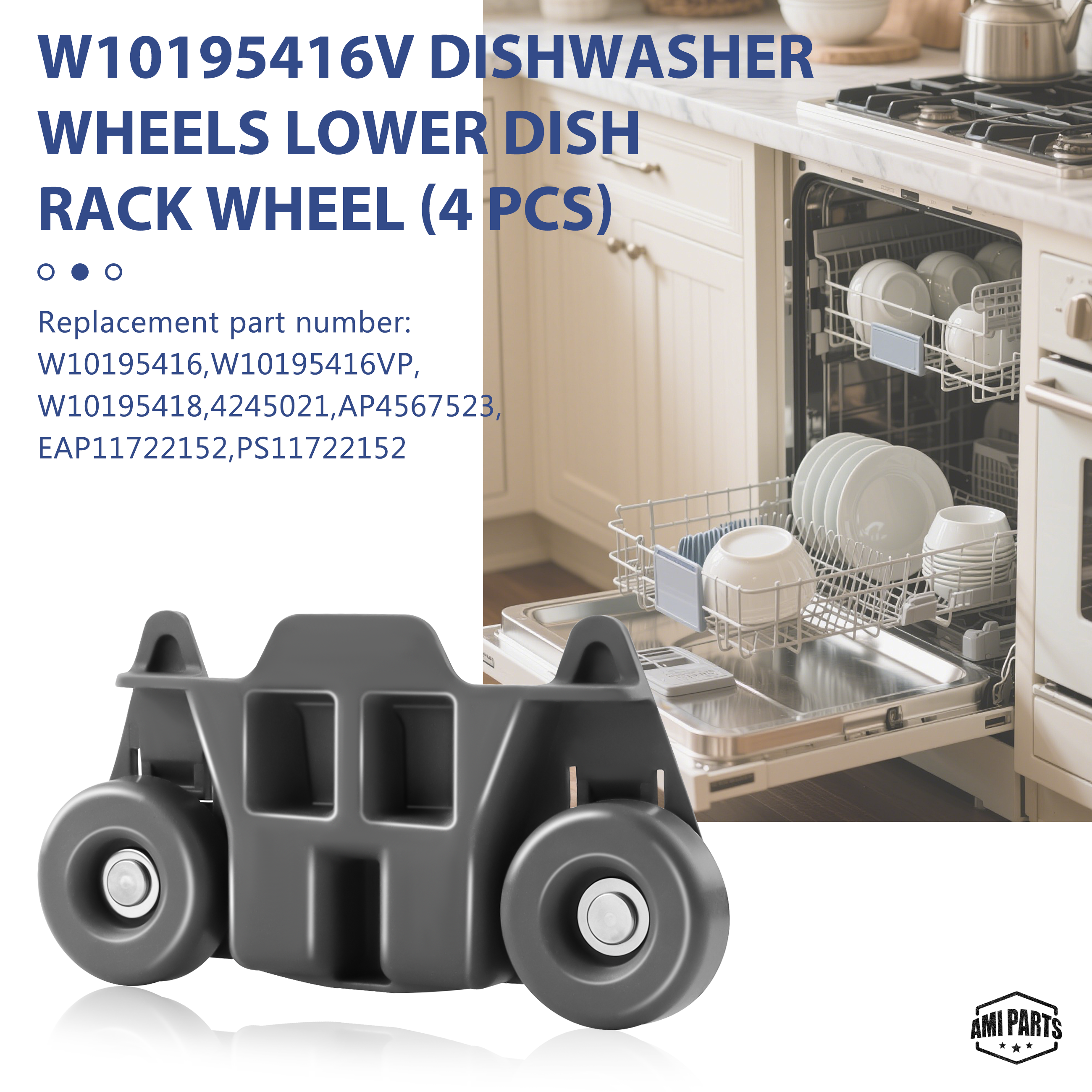 AMI PARTS W10195416 Dishwasher Wheel, Lower Rack, Compatible with KitchenAid, Kenmore, Maytag, Whirlpool Dishwasher Rack Components, 4-Piece